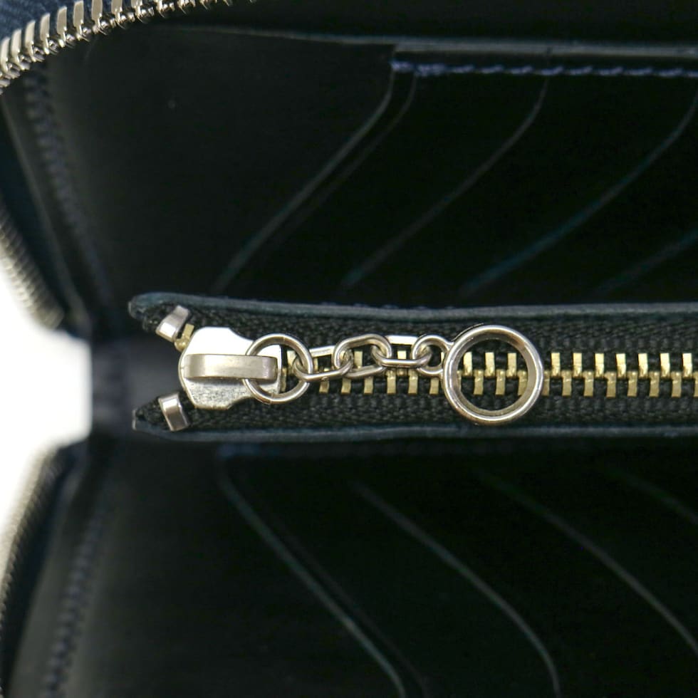 ※使用しているアルミファスナーは素材の性質上、ファスナーの開閉によってアルミの粉が生地を汚す場合がございます。また、はじめはファスナーに引っ掛かりを感じる場合がございますが、使用回数によって軽減されます。ファスナーの特性として、ご了承ください。