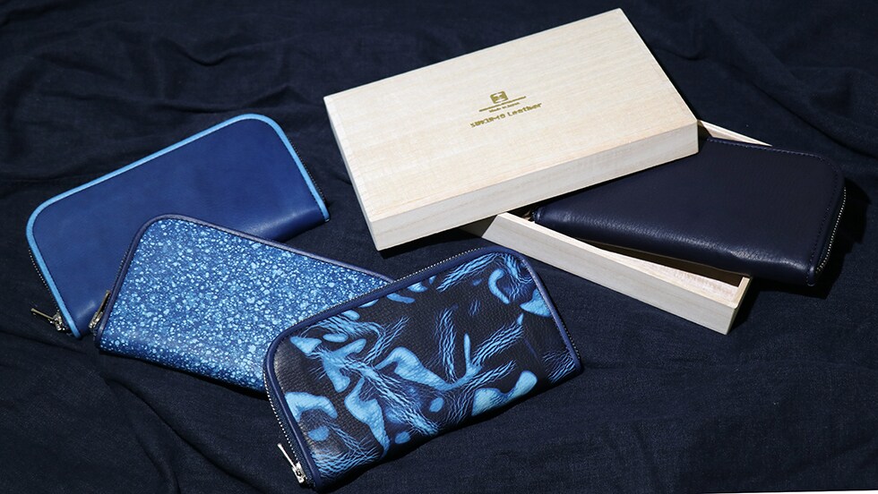 繊細で味わい深い藍染革長財布