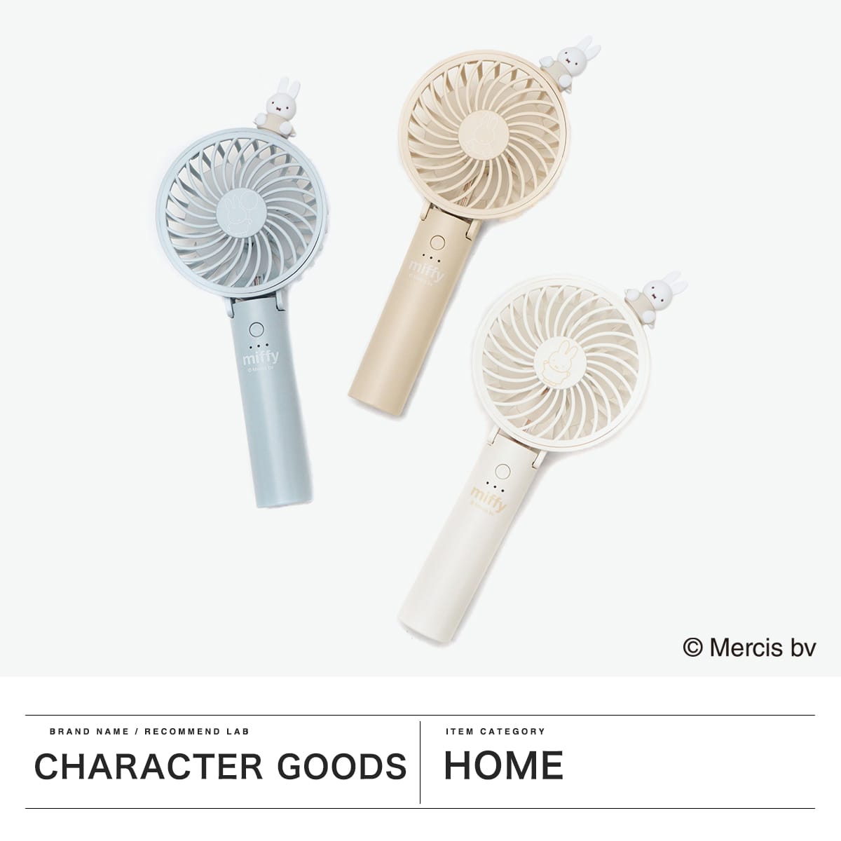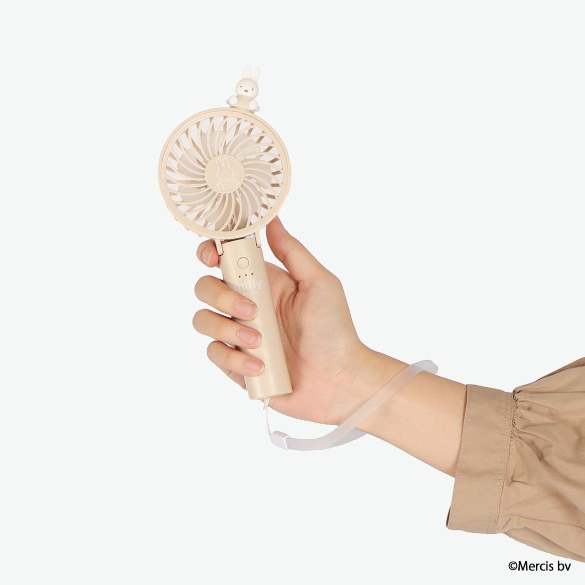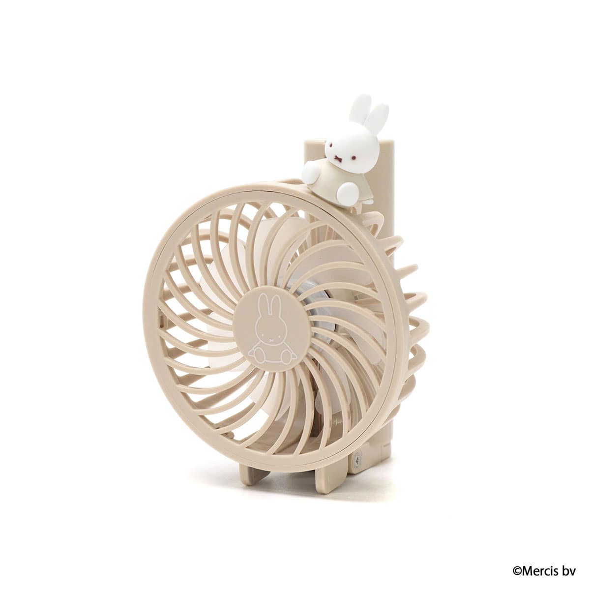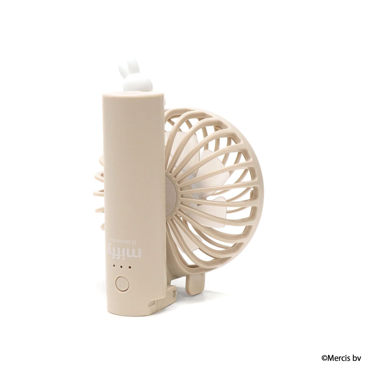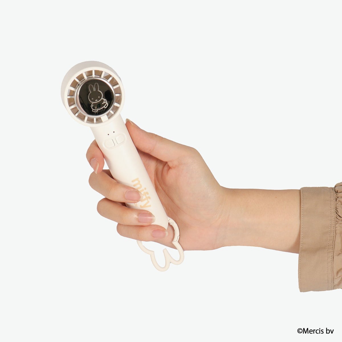 冷却プレートと送風のW効果で、瞬時にひんやりするUSB充電式ハンディファン。キュートなミッフィー形カラビナ付きで、バッグなどに簡単取り付け。風量3段階調節で夏を快適に過ごせます。