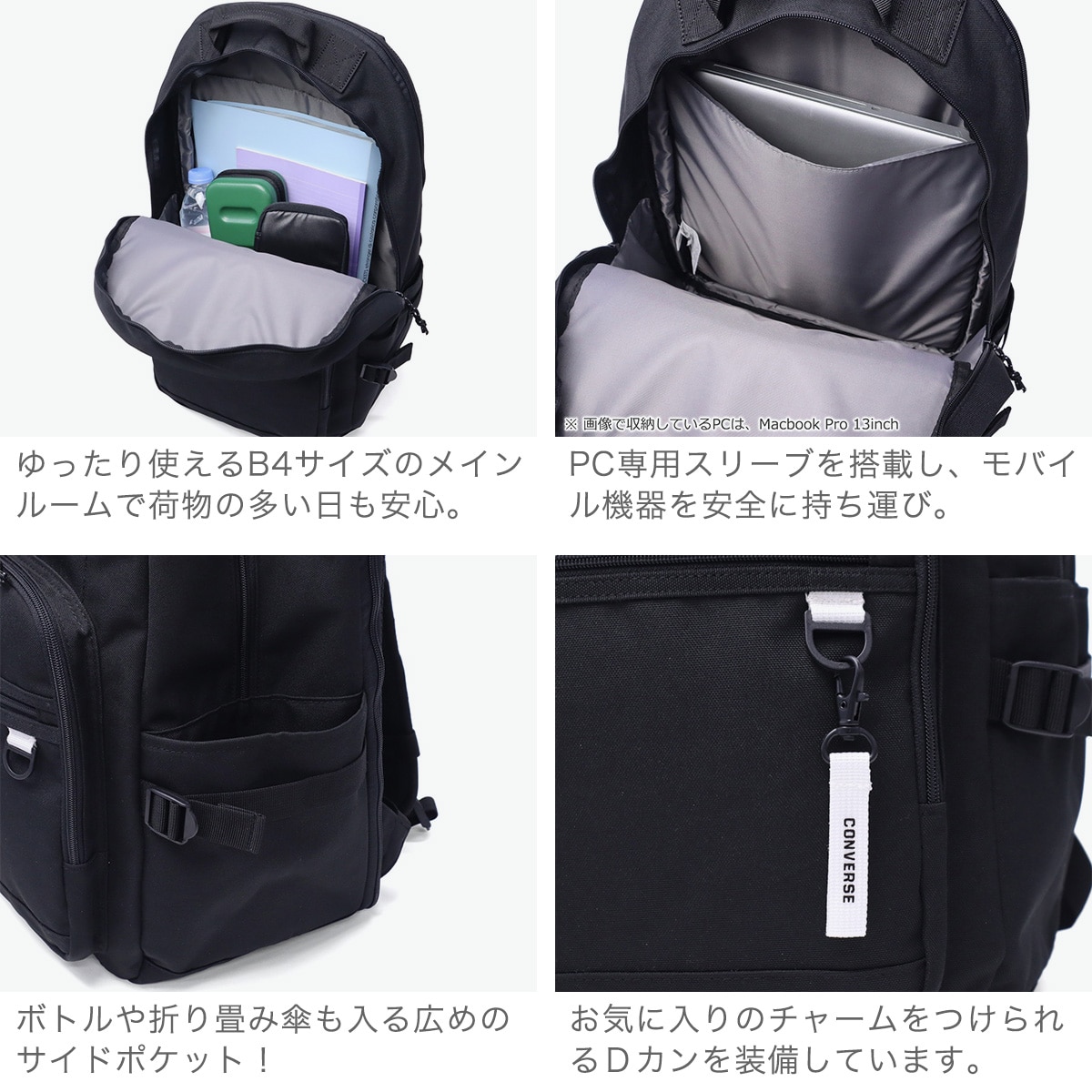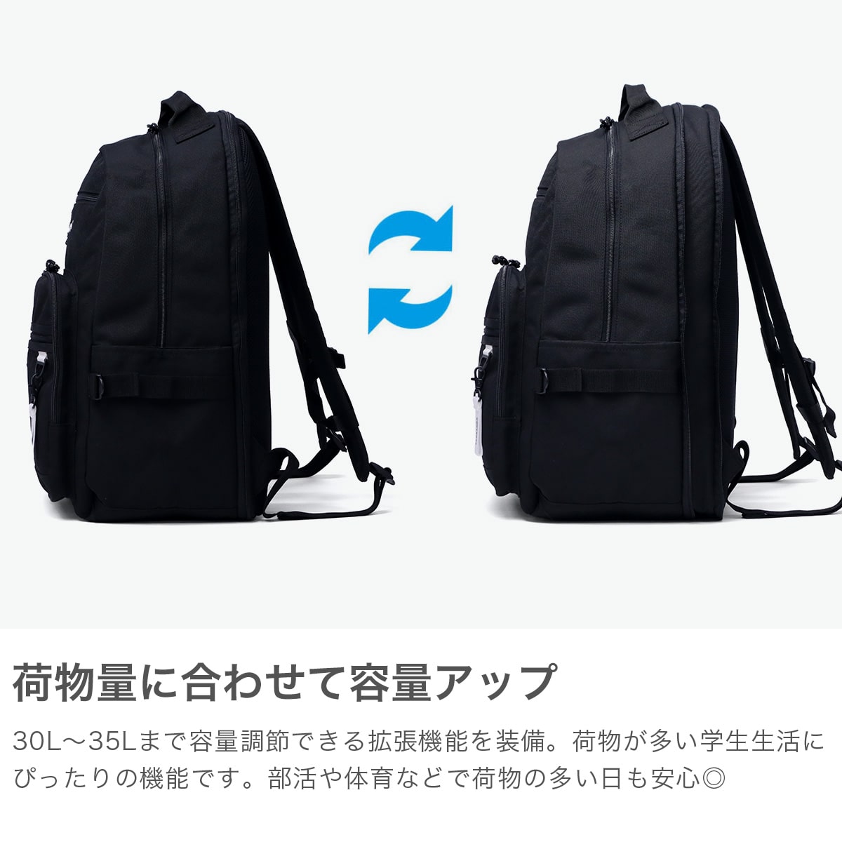容量30~35Lまで拡張できる機能が嬉しいリュックサック。荷物が多くなる部活の日でも安心!大きく開く開口部で荷物の取り出しがスムーズに行えます。ボトルや折り畳み傘も収納できる便利なサイドポケットやPC収納部も備えた、通学に最適なアイテムです。