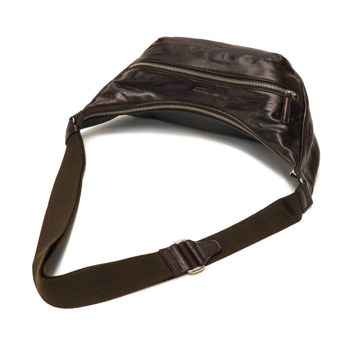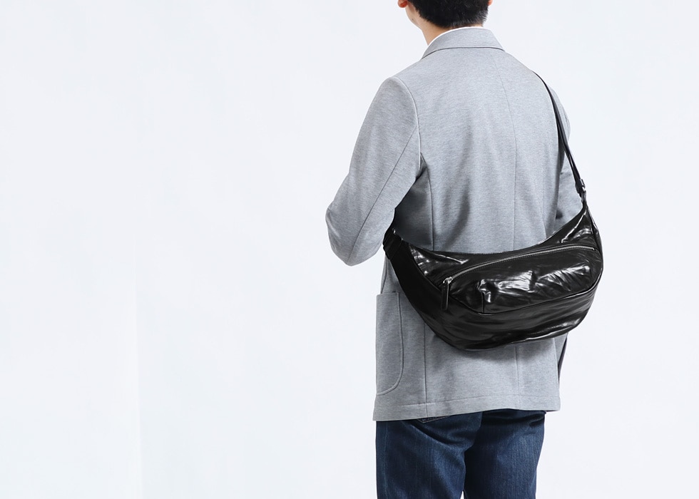 ダニエル&ボブ社の為だけに作り上げるレザー『RODI ローディー』の独特なシワと艶感が大人の着こなしにクラス感を添える、エレガントなボディバッグ。ラウンド形の独特なフォルムは体に沿うようにフィットするだけでなく、スタイリングのポイントとしても映えるアイテムとなっています。
