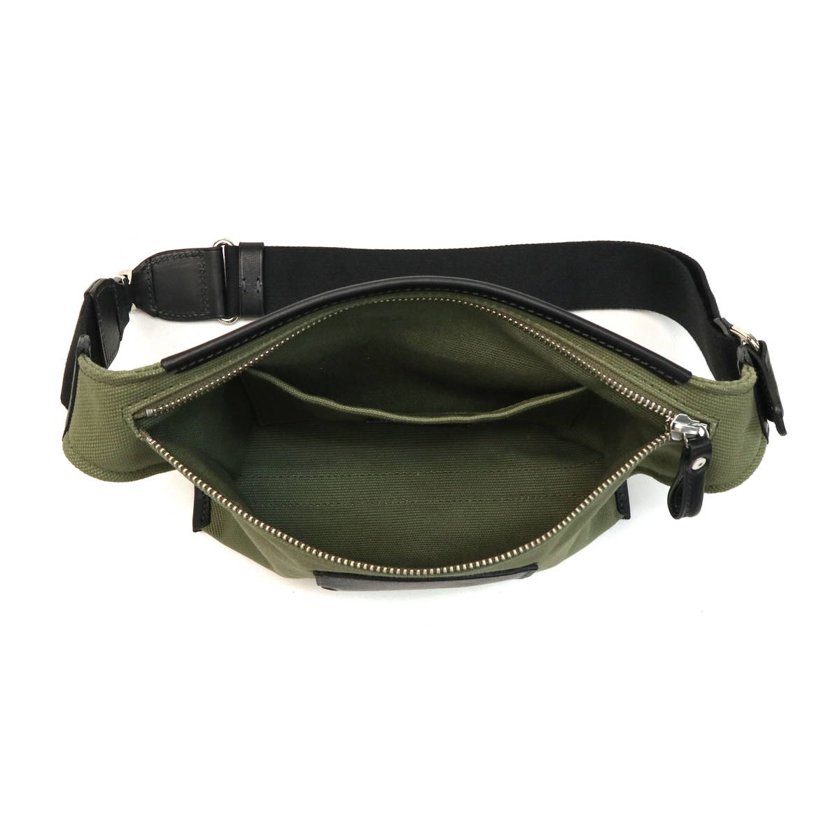 ミラノ近郊の繊維地帯で織られた爽やかな帆布に、トリミングでクオイオレザーを組み合わせたシャープなデザインのボディバッグ。非常に軽く、型崩れしにくい耐久性を備えた仕上がりです。身体に沿った曲線でぴったりとフィットするスポーティーなラインで、身軽なスタイリングを実現します。