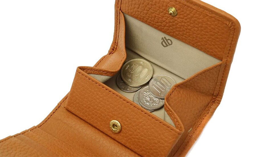 収納スペースはコンパクトサイズでありながら、紙幣やカードが充分収納することができる作りになっています。かぶせ部分を開けた小銭入れ部分はボックス型になっており、取り出したい小銭を探しやすいのが魅力です。