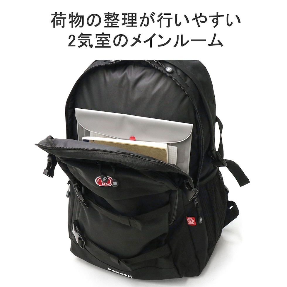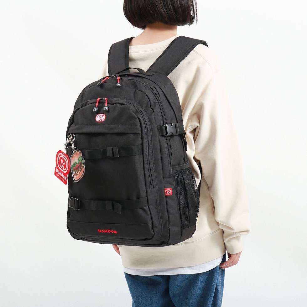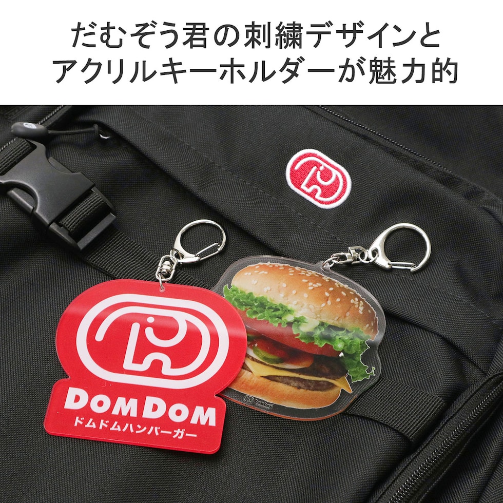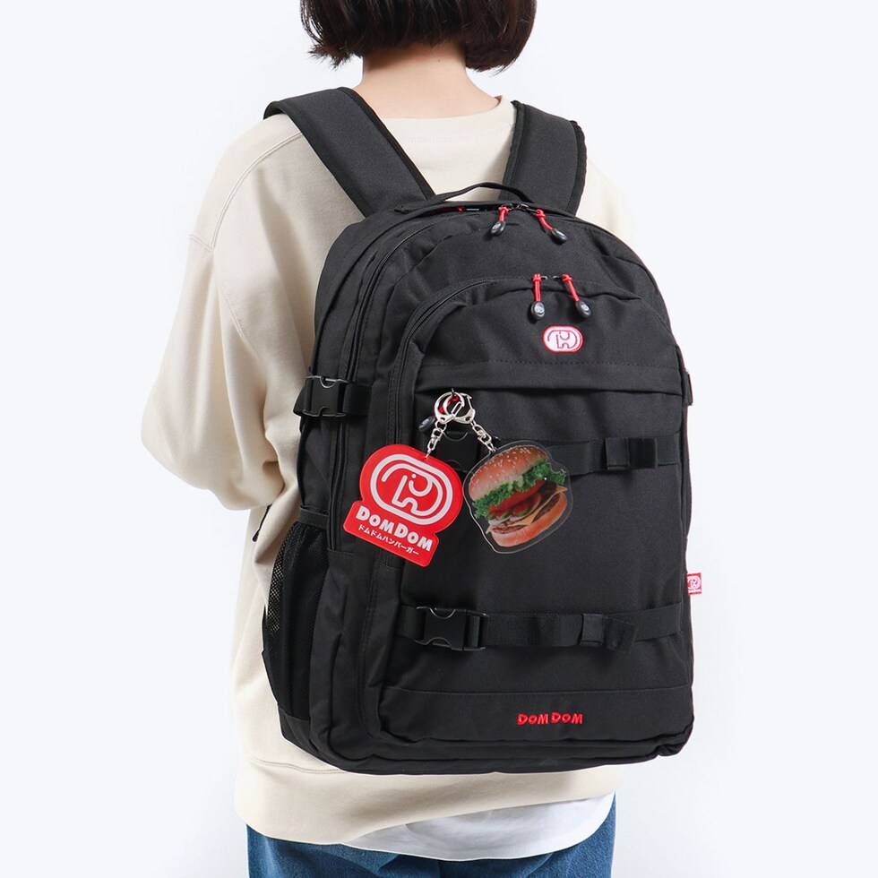 ドムドムハンバーガーのロゴマーク「どむぞうくん」をあしらったデイパック。こちらはバックルベルトのデザインがお洒落な30Lモデルです本体には、ドムドムハンバーガーのロゴとビッグドムトマト&チーズのアクリルキーホルダーが付属した、ファンにはたまらない仕上がりです。目を惹くデザインは勿論、荷物の仕分けが行いやすい2気室仕様を採用した実用性抜群の機能にも注目です。
