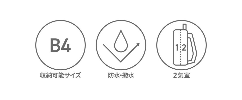 メインスペースは大容量B4サイズ。広々とした背面側の収納部には仕分けポケットを設け、ファイル等、他のアイテムと仕分けて管理したい荷物の収納に役立ちます。前面側の収納部はポケットを設けないシンプルで無駄のないつくり。本体のフロントやサイドには、移動中の取り出しに便利なアウトポケットが充実しているのもポイントです。さらに、本体素材には撥水加工が施されており、デイリー使いに嬉しい仕上がりになっています。