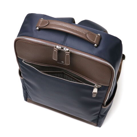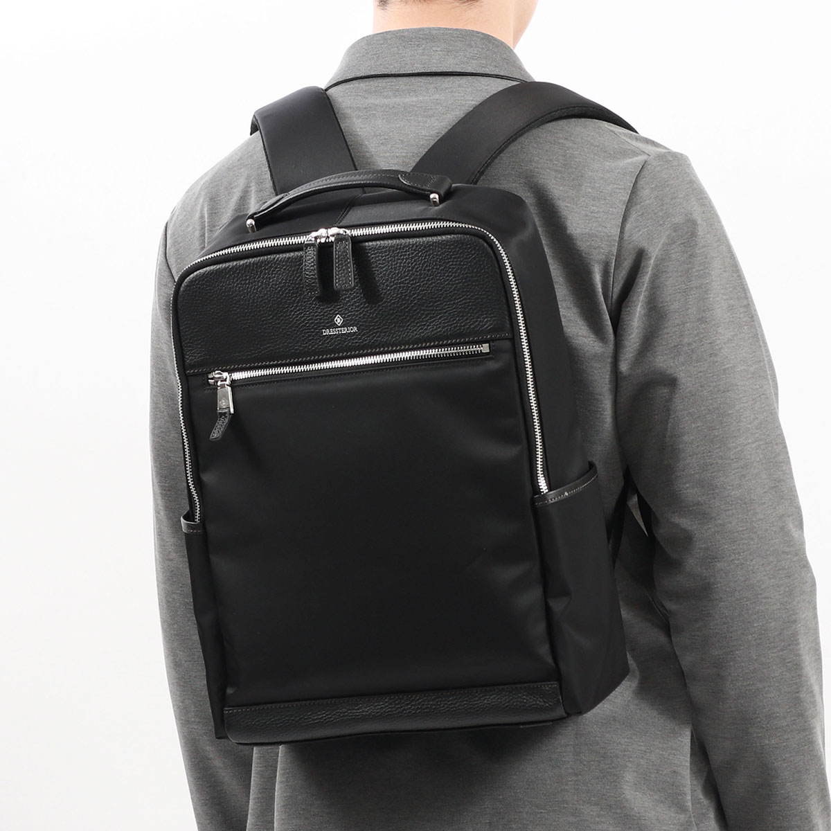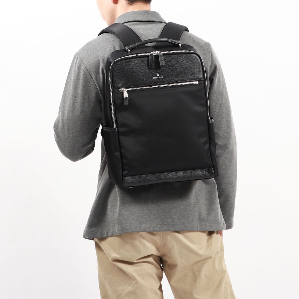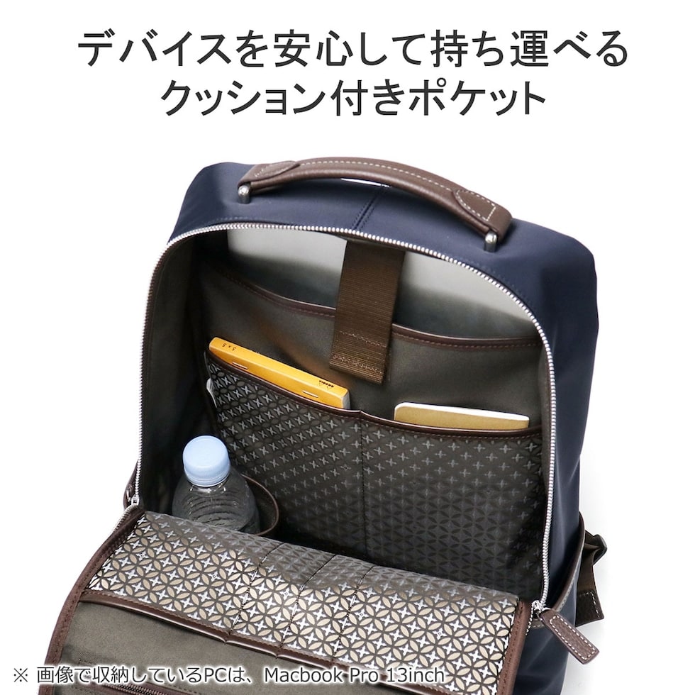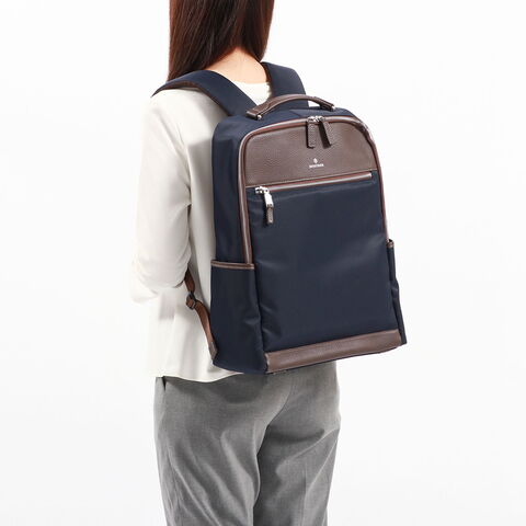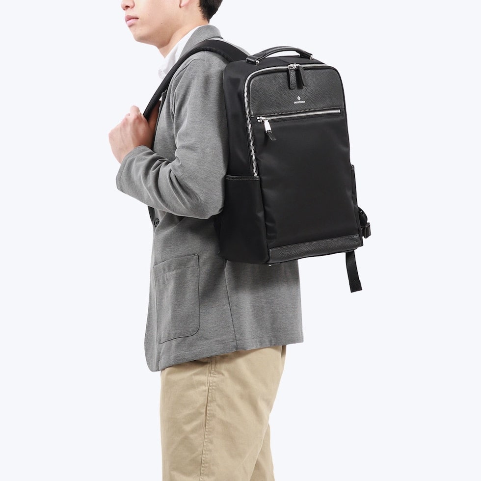 カジュアルからビジネスまで、スタイルを問わずに活躍する『USE』シリーズのリュック。上質で高級感ある本革をバッグの顔となる部分に取り入れ、高品質なリサイクルナイロンと組み合わせることでよりスタイリッシュな印象に仕上げています。収納部はA4ファイルがすっぽりと収まり、ポケットを複数備えた使い勝手のよいつくり。太めのストラップと蒸れにくい背面設計で、快適にお使いいただけます。