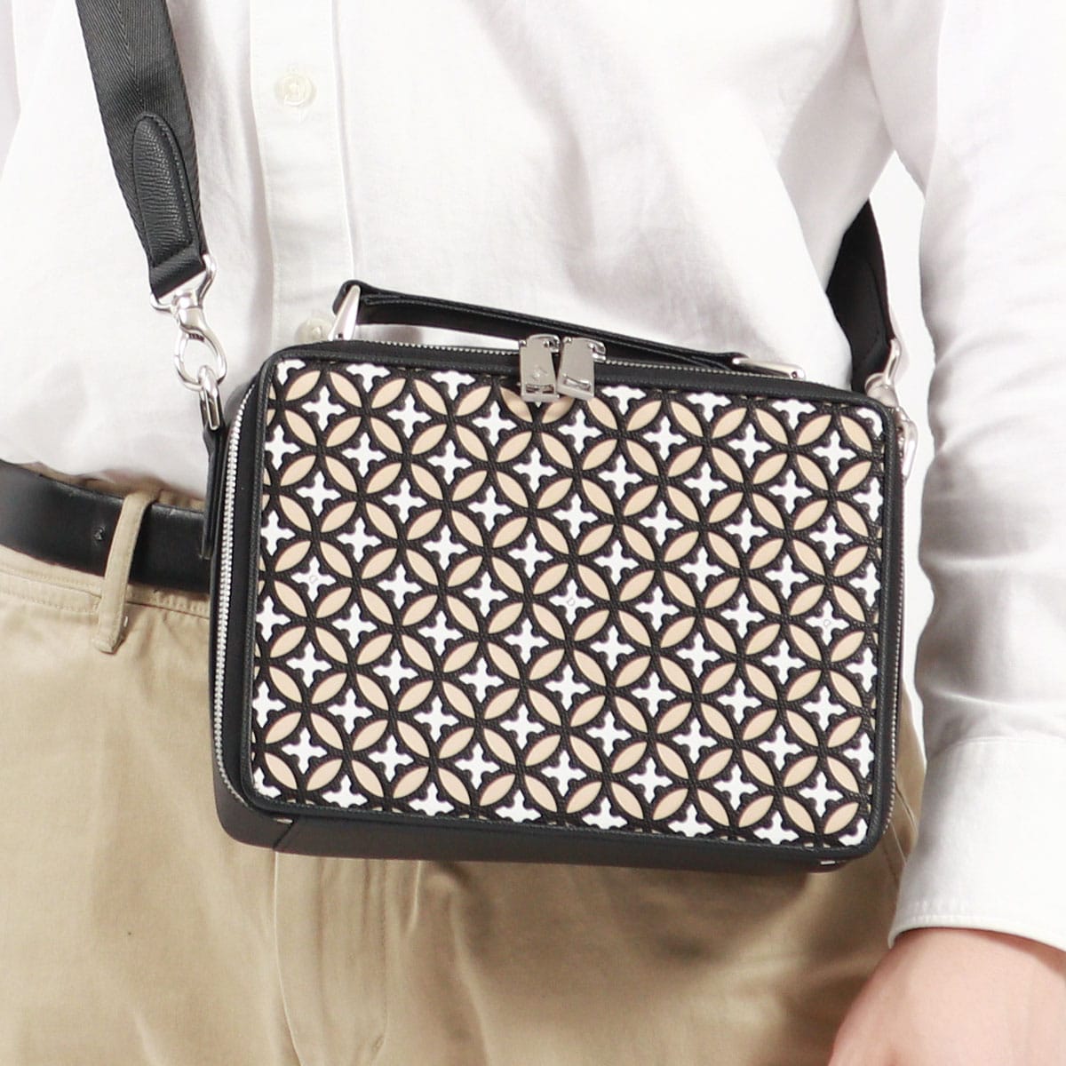 ジオメトリックな図案に、イニシャルの「D」を組み合わせたオリジナルグラフィック“オーバーラップサークル”。こちらを大胆に表現した『Airdale』シリーズから、ショルダーバッグが登場しました。男女問わず使えるデザインで、フォーマルな場面に相応しい上品さを完備。コンパクトな見た目ながら、必需品がまとまるちょうどいい収納力も備えています。