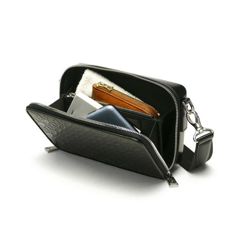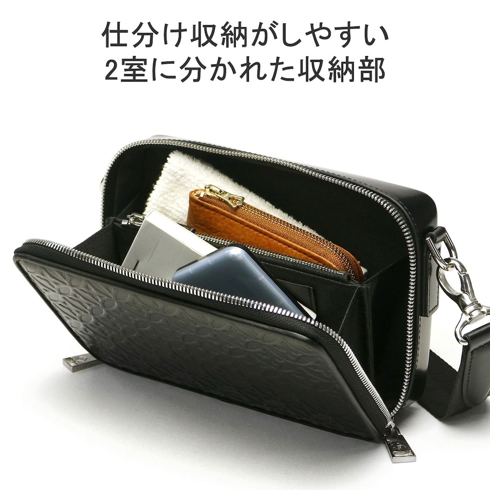 ブランドを象徴する“オーバーラップサークル”のグラフィックを、エンボスで繊細に表現した『Welsh』シリーズ。上品なテイストを纏ったこちらのミニショルダーは、セミサイズの二つ折り財布が収納可能。さらにジップポケットやカードポケットなど、コンパクトながら便利な収納機能を完備しています。