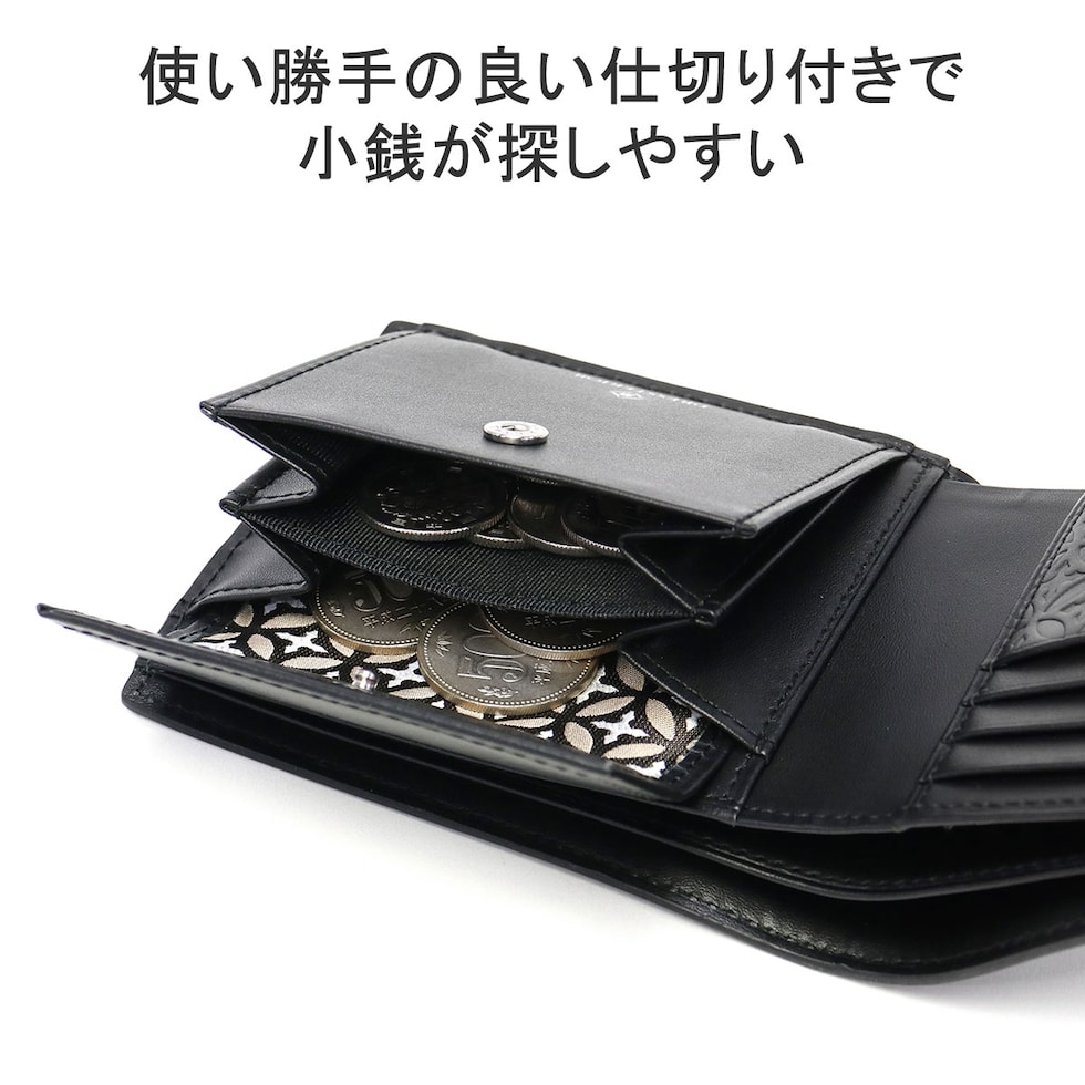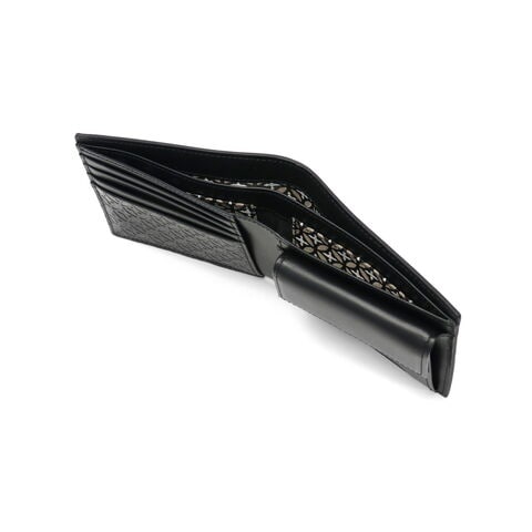 イタリアの名門タンナー『オーバーロード』社のサフィアーノレザーを使用した二つ折り財布。札入れ内にもポケットを設けており、コンパクトながらも合計6枚のカードを収納できるつくりになっています。繊細に表現されたロゴブローチや、ブランドを象徴するオリジナル柄など、細部までこだわった高級感のある雰囲気が魅力です。