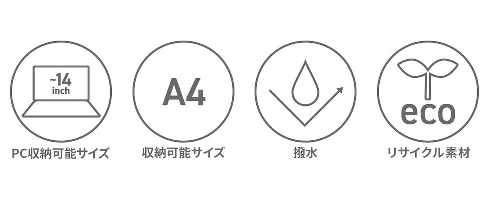 ・14インチMacBook Pro(31.26cm×1.55cm×22.12cm)以上のサイズに該当するPCは収納できません。