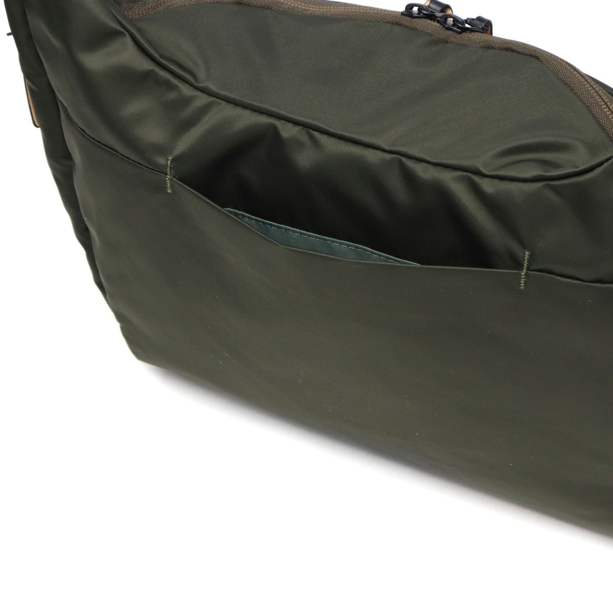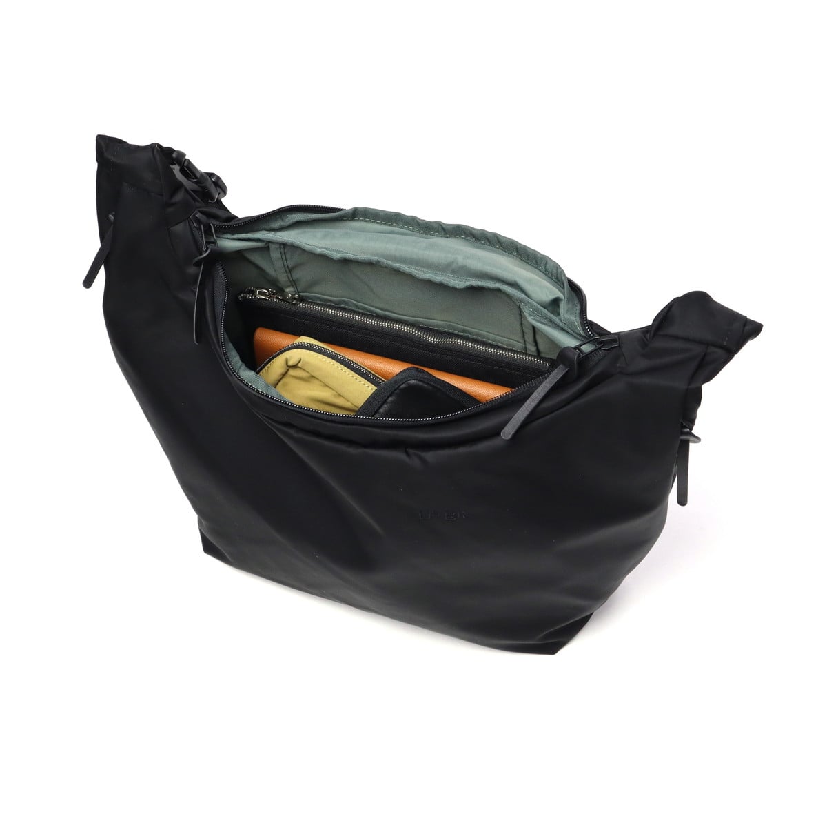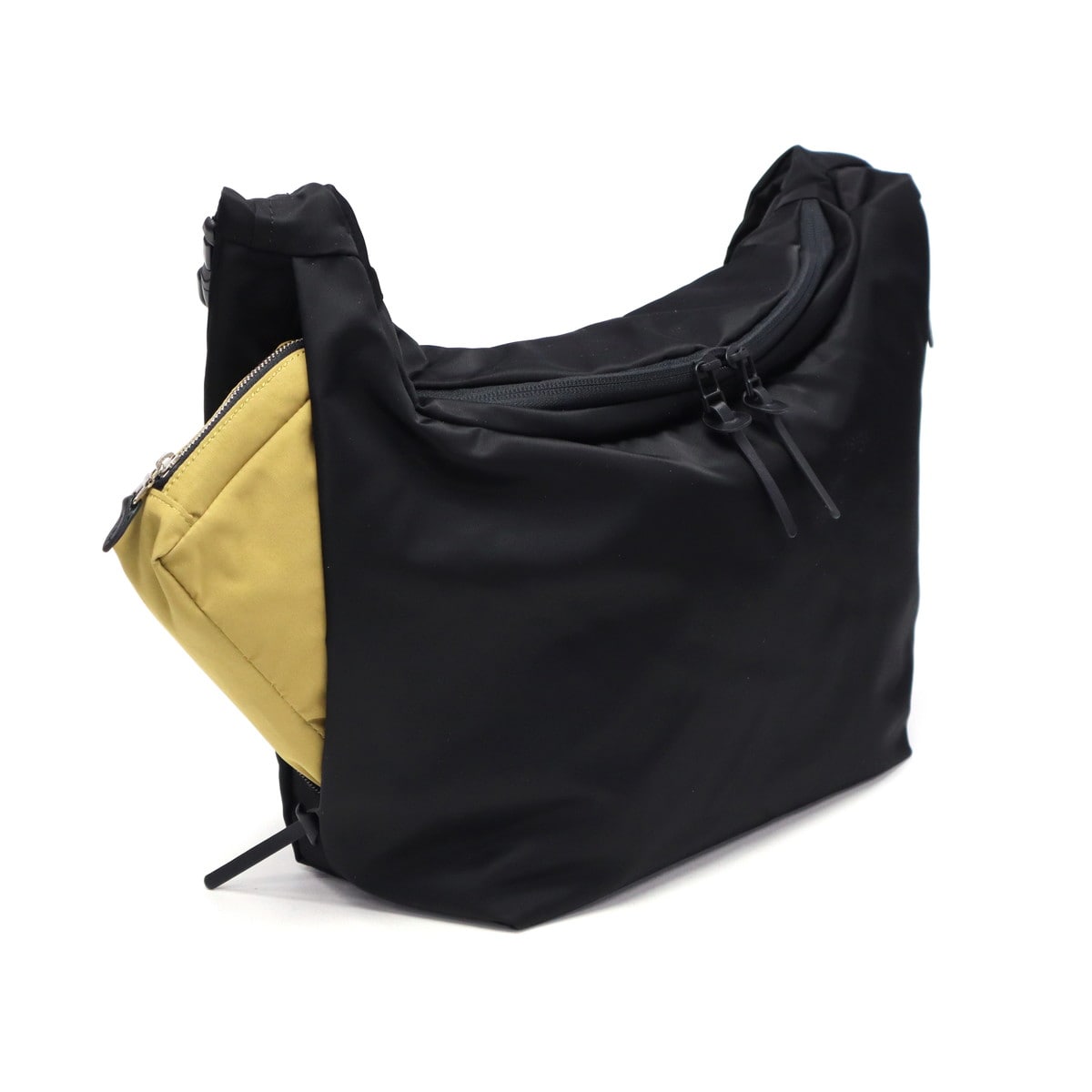 超耐久撥水加工「ダントツ撥水」を施した高密度ナイロンツイル素材を使用したショルダーバッグ。抜群の水切れ性と耐久性で、撥水機能が長続きします。レジ袋から着想を得た造りで、バッグの背面が体に沿うようにデザインされています。サイドファスナーからメイン収納へのアクセスが可能で、使い勝手も抜群です。