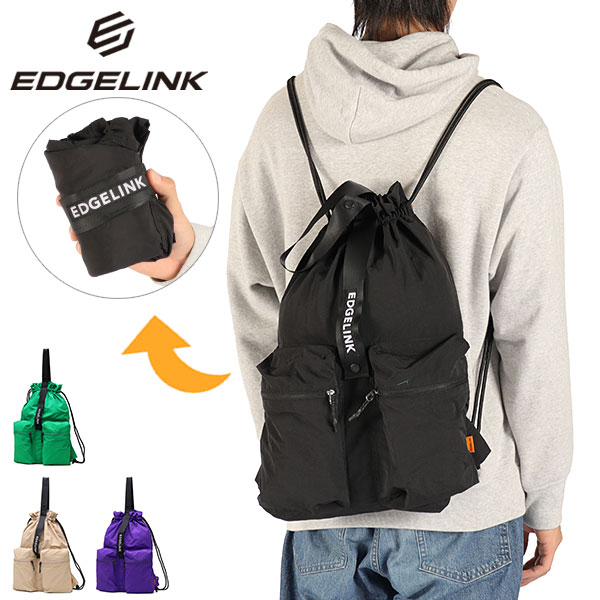 - > エッジリンク ナップサック おしゃれ スポーツ 大人 EDGELINK リュック メンズ レディース 可愛い かわいい 黒 ナイロン ブランド パッカブル 折り畳み 折りたたみ A4 NAMPAK Foldable 2 Pocket Pack 60192