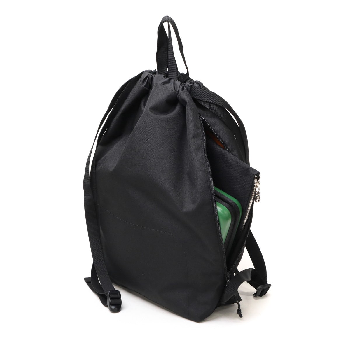 スケーターのリアルな声をもとに、バンタンデザイン研究所のスケートボード&デザイン専攻の現役学生と共同開発したナップサック。スケート遠征やパークでの使用はもちろん、通学や街中での移動にも最適。スケーターのための機能を、日常でも活かせるデザインに仕上げています。必要な荷物をざっくり収納し、ラフに持つだけでコーデを格上げできる万能アイテムです。