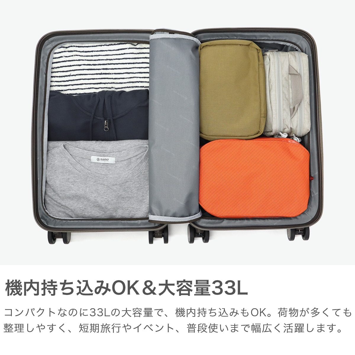 「ストリートテイストなデザイン」×「機能性」をコンセプトにした『CRUZBOX/クルーズボックス』。こちらは、機内持ち込み可能な33L容量のスーツケースです。本体には、キズが目立ちにくいマットなシボ加工を施し、シンプルな横リブデザインでストリート感を演出。初めてのスーツケースとしても使いやすく、修学旅行や研修旅行にもぴったりなコストパフォーマンスに優れたアイテムです。