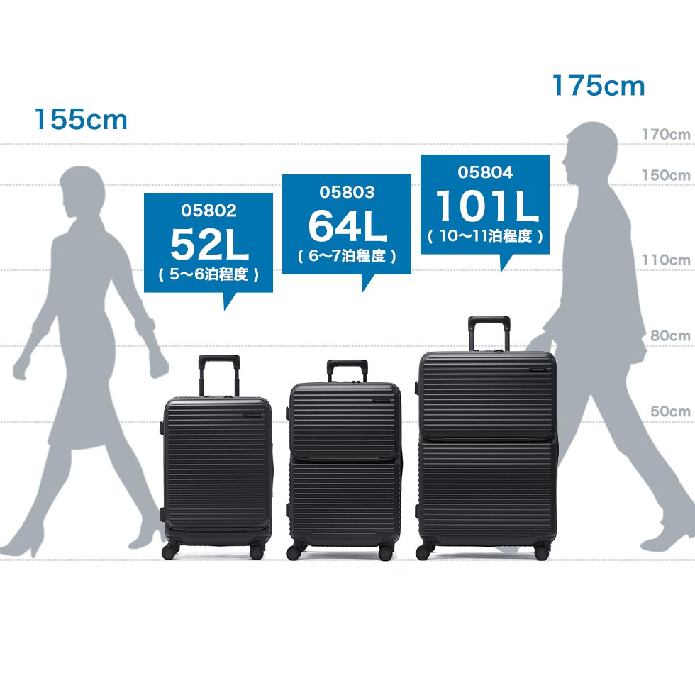 「ストリートテイストなデザイン」×「機能性」をコンセプトにした『CRUZBOX/クルーズボックス』。こちらは、6?7泊程度の旅行に最適な64L容量のスーツケースです。本体には、キズが目立ちにくいマットなシボ加工を施し、シンプルな横リブデザインでストリート感を演出。初めてのスーツケースとしても使いやすく、修学旅行や研修旅行にもぴったりなコストパフォーマンスに優れたアイテムです。