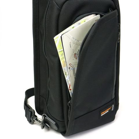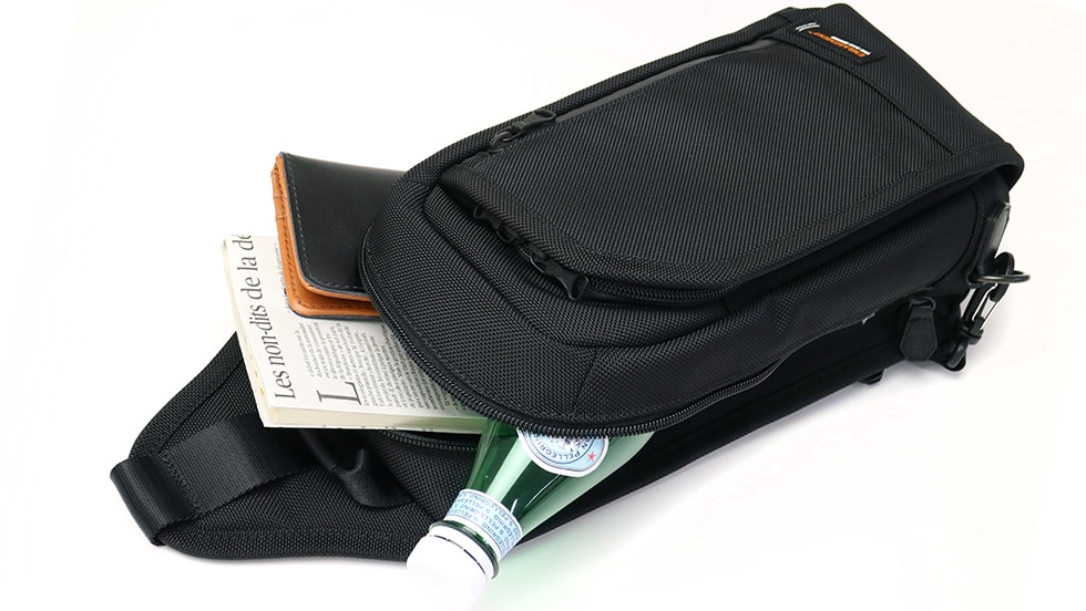 スタイリッシュなボディですが、お出掛けに必要なものをしっかりと収納することが出来る、休日に欠かせないアイテムです。開口部は大きく開き視認性に優れています。アウトポケットにはウォータープルーフファスナーを採用し、水の浸入を防ぐ仕様となっています。