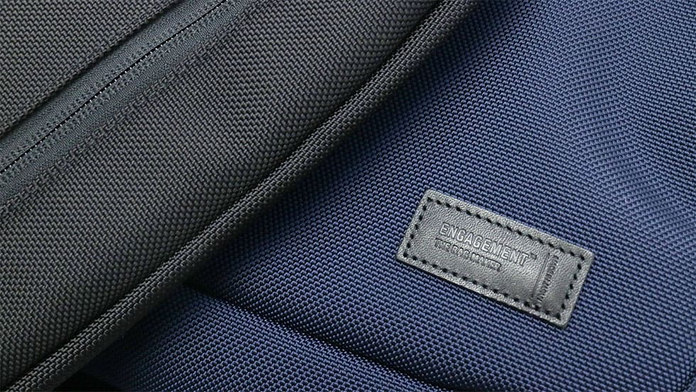 Engagement Nylonは原糸から厳選して開発されたオリジナル素材。2520D(デニール)の高密度で織られ、優れた撥水性と耐水性を発揮。効果は半永久的に持続します。美しさとタフさを兼ね備えた高機能な素材です。