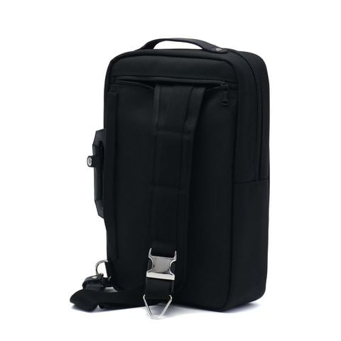 背面に収納されたショルダーストラップを使うことで、斜め掛けにして持ち運ぶこともできます。また、キャリーケースとのセットアップも可能になっており、出張時などに役立つ仕様となっています。