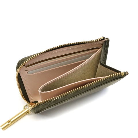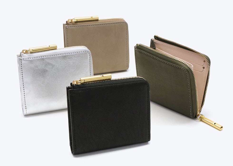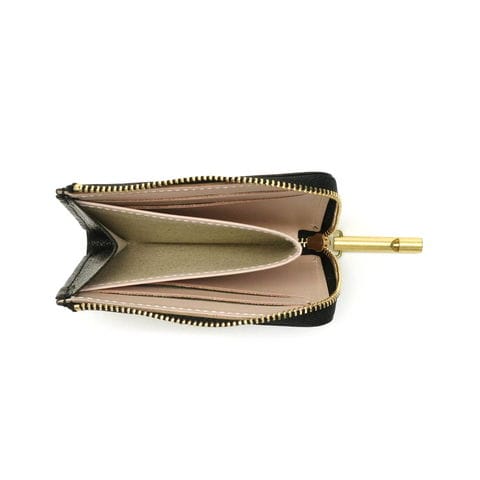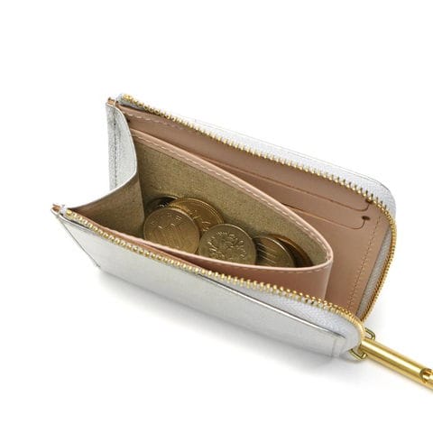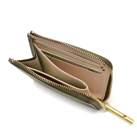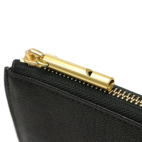 ゴートレザーを贅沢に使用したミニ財布。引き手部分は小さな笛になっており、シンプルなデザインのアクセントになっています。片手に収まるコンパクトなサイズ感は扱いやすいだけでなく、小さめバッグにもすっきりと収まり持ち運びにも便利です。