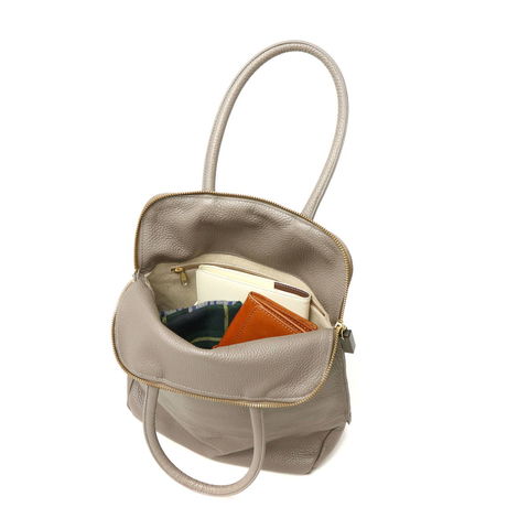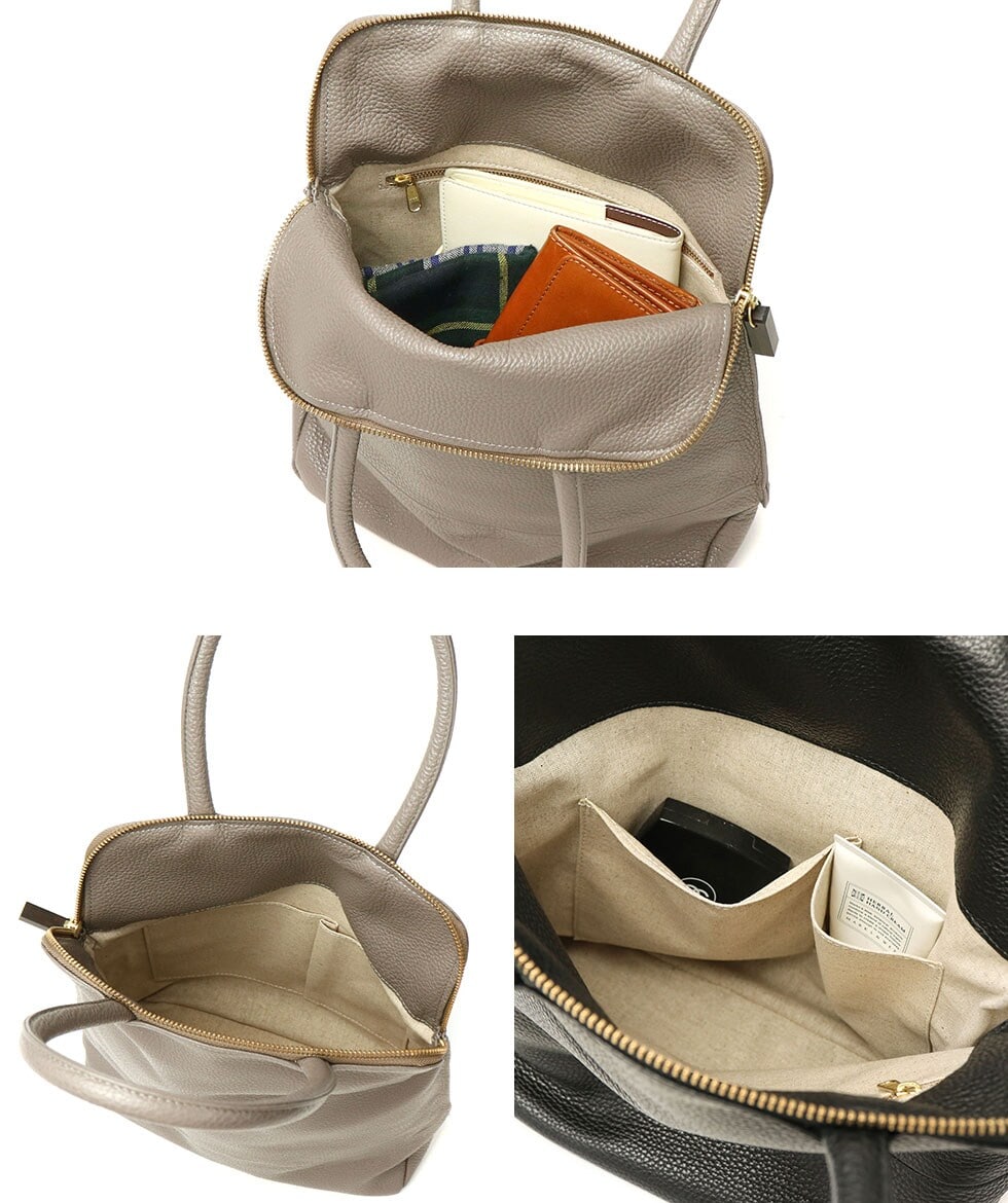 シボが美しく映えるコンパクトなトート