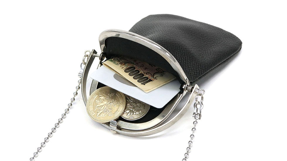 内装はポケットなどを省いたシンプルなつくり。小銭はもちろん、カードや畳んだお札も収納できます。コインケースや小さなお財布としてなど、用途に縛られず自由に使えるのが魅力的。