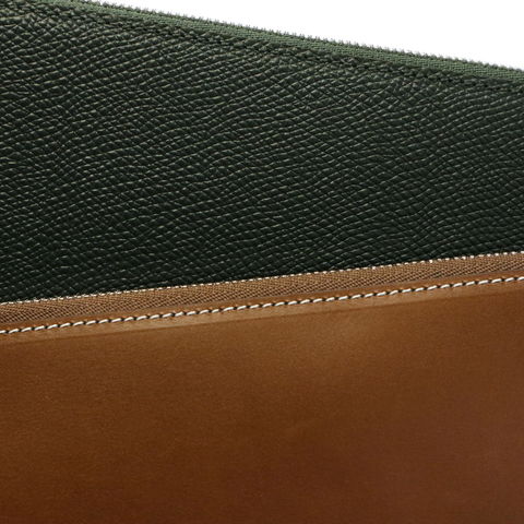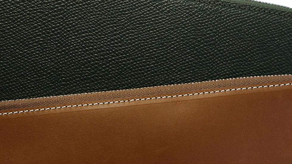 本体の使用している本革には、表情の異なる2種を使用。傷の目立ちにくい「WEINHEIMER EMBOSSED LEATHER」と、滑らかな手触りが特徴の「DUPUY COW LEATHER」。お好みに合わせた質感や雰囲気をお選びいただけます。