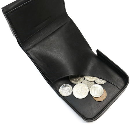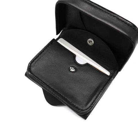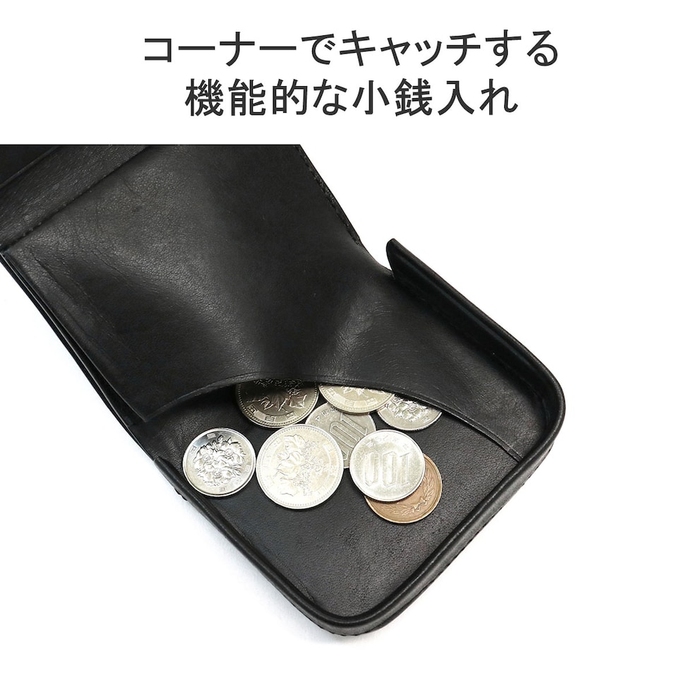 小銭入れスペースはササマチの仕様のため、見た目よりも収納力がある仕様に。取り出す際にはコーナーで小銭をキャッチし、こぼれを防げるよう工夫が施されています。またカード収納部はマチが備わっており、クレジットカードほどの厚みでおおよそ10枚程度まで収納が可能。カード複数持ちの方に重宝するデザインです。