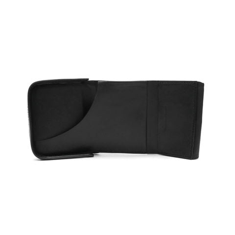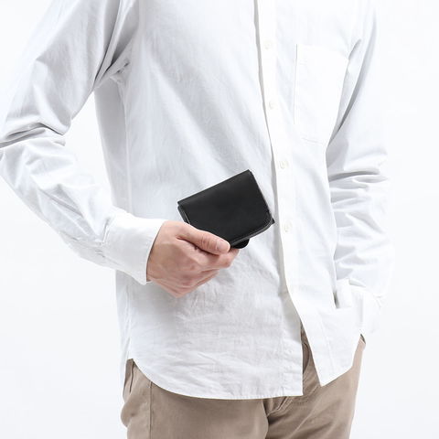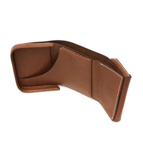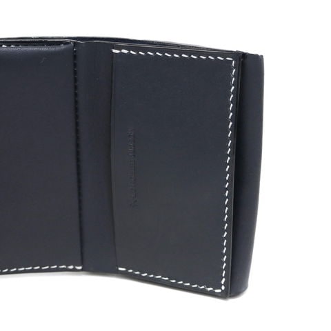 垂直に配置した革を立体的に縫製する "駒合わせ縫い" という技法で造られた3つ折りの財布。底面の持ち手を引っ張りながら開くことで、内装へアクセスする仕組みに。箱を開けるようにぱかっと開閉ができる、遊び心のあるデザインが特徴です。また紙幣、小銭入れスペース、カードポケットなど必要な機能もしっかり押さえた仕上がりがポイント。
