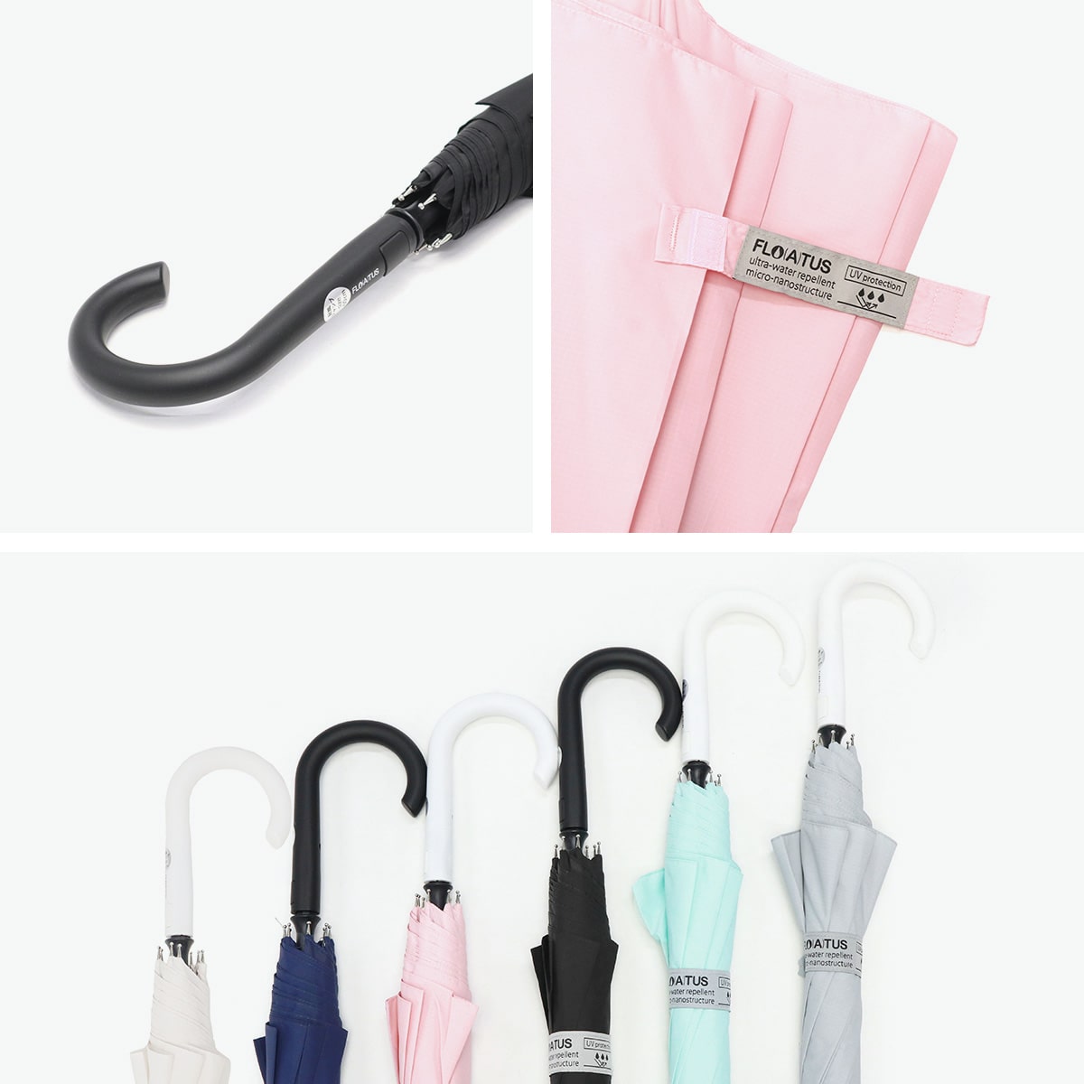 一振りで体感できる水はけが、雨でもハレやかを演出する『FLO(A)TUS』シリーズの長傘。ジャンプ式で使いやすく、親骨60cmの大きめサイズ。耐風設計で風の日も安心、通勤や通学にもぴったりの一本です。