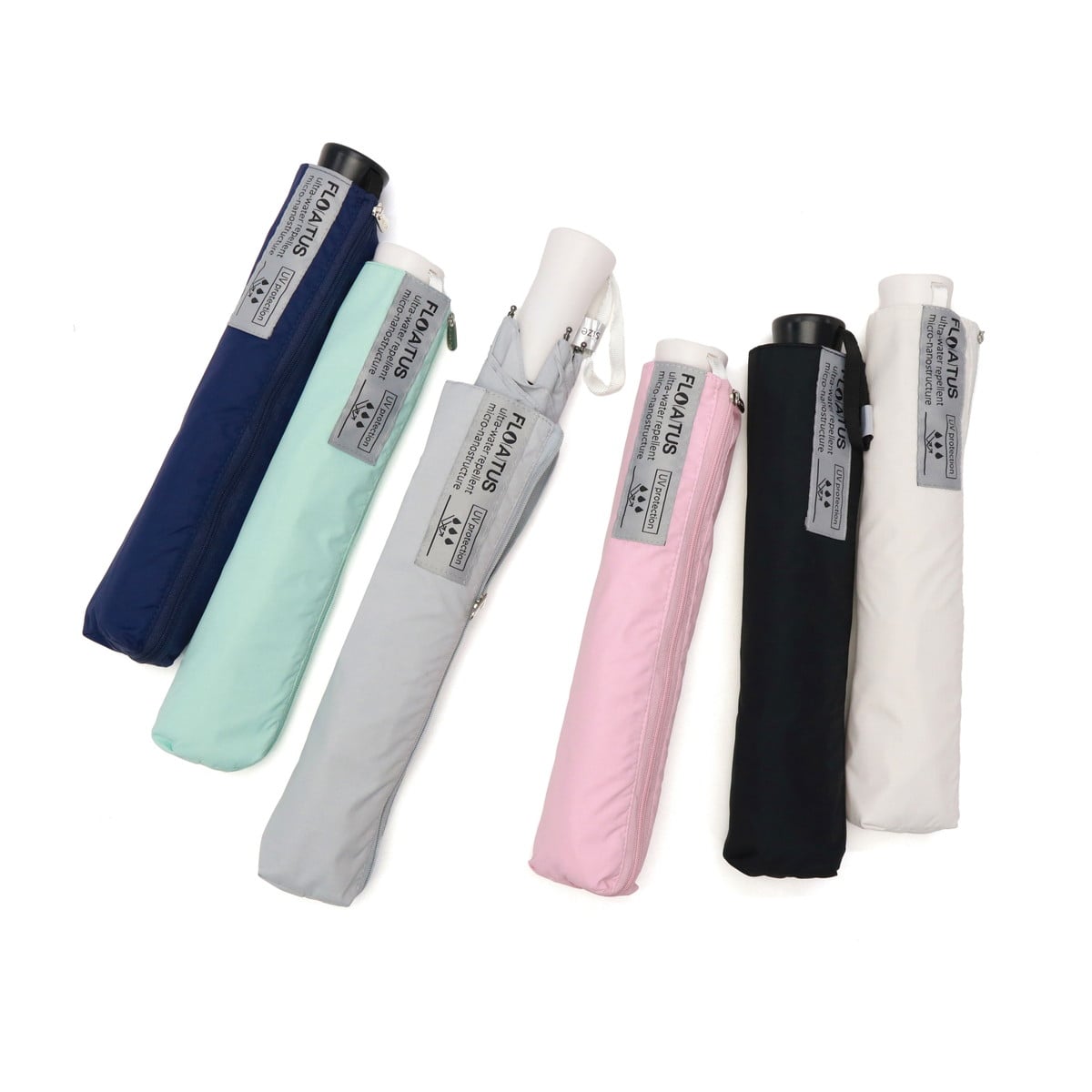 一振りで体感できる水はけが、雨でもハレやかを演出する『FLO(A)TUS』シリーズの晴雨兼用折りたたみ傘。自動開閉式でスムーズに使え、UVカット・耐風設計付き。親骨60cmのゆったりサイズながら、軽量&コンパクトで毎日の携帯にも最適です。