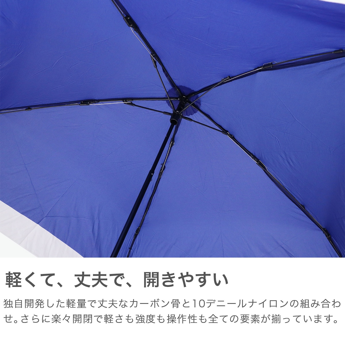 軽さと強度を兼ね備えたカーボンフレームを1から再構築し、スマホより軽く重さを感じさせない「魔法のような軽さ」を叶えた折り畳み傘。ただ軽いだけでなく楽々開閉で操作性にも自信あり。カバンの中でも場所をとらないスリムなボディで毎日の持ち歩きに負担にならないので、365日持ち歩く常備傘に最適です。