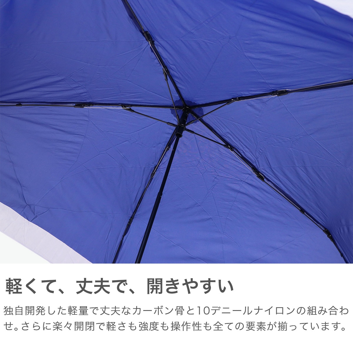 軽さと強度を兼ね備えたカーボンフレームを1から再構築し、スマホより軽く重さを感じさせない「魔法のような軽さ」を叶えた折り畳み傘。ただ軽いだけでなく楽々開閉で操作性にも自信あり。紫外線防止加工を施しており、雨の日のUV対策にもおすすめです。