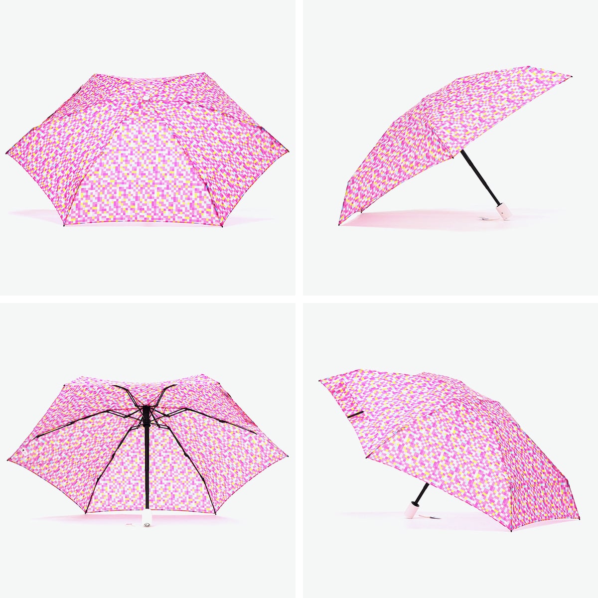 晴雨兼用の軽量折りたたみ傘。紫外線防止加工を施しているので、雨の日のUV対策にもおすすめです。常備傘としてバッグに入れておけるコンパクトなサイズ感もポイント。雨の日がパッと明るく楽しくなる、ハッピーなデザインです。