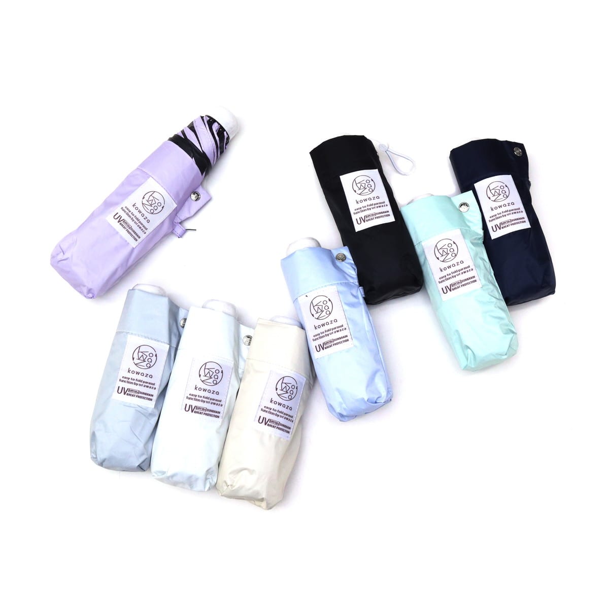 パッとさして、サッとしまえる『kowaza/コワザ』の晴雨兼用傘。世界初の形態安定技術を採用し、裏側に貼られたPET樹脂素材の特殊シートがガイドの役割を果たし、簡単に生地を巻くことが可能です。遮光率・UVカット率ともに100%で、強い日差しをしっかりブロック。撥水性にも優れ、突然の雨にも安心です。シンプルなデザインで、男女問わずユニセックスにご使用いただけます。