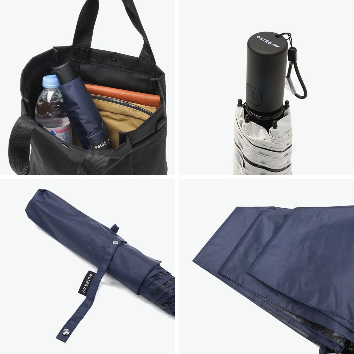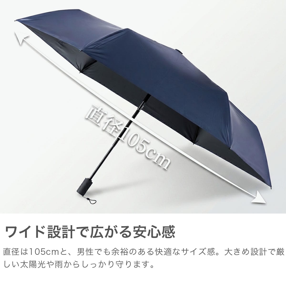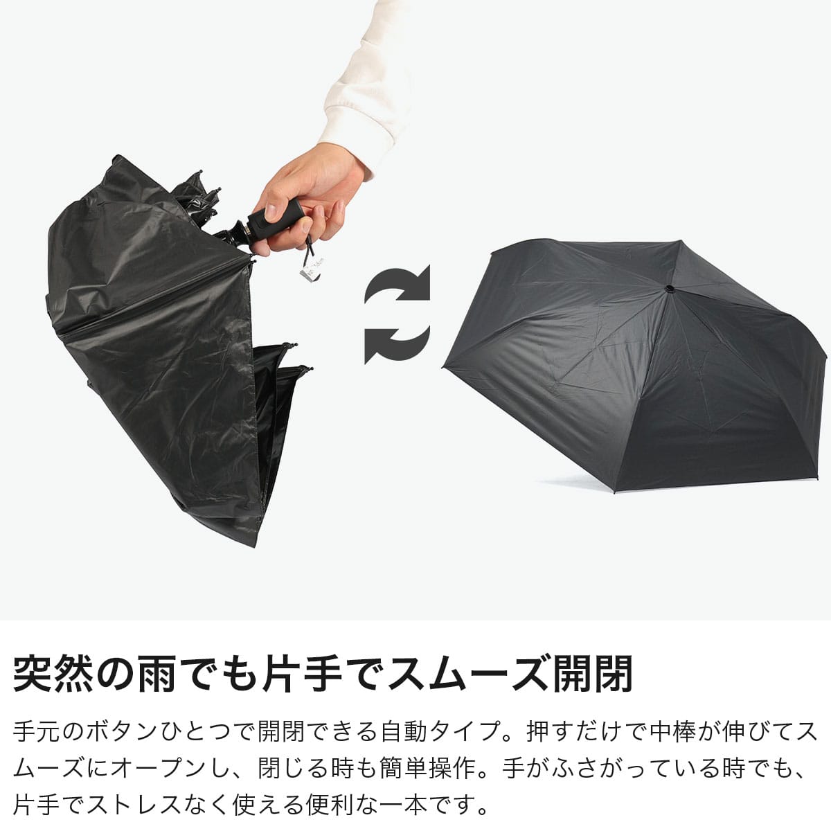 ワンタッチで開閉できる自動機能と、親骨58cmのワイド設計でしっかりカバー。遮光率・UVカット率ともに100%、さらに遮熱効果で強い日差しや暑さ対策にも対応します。軽量かつコンパクトに持ち運べるため、通勤やお出かけ、旅行にも最適。晴雨兼用で天候を問わず使える、シンプルで洗練された一本です。