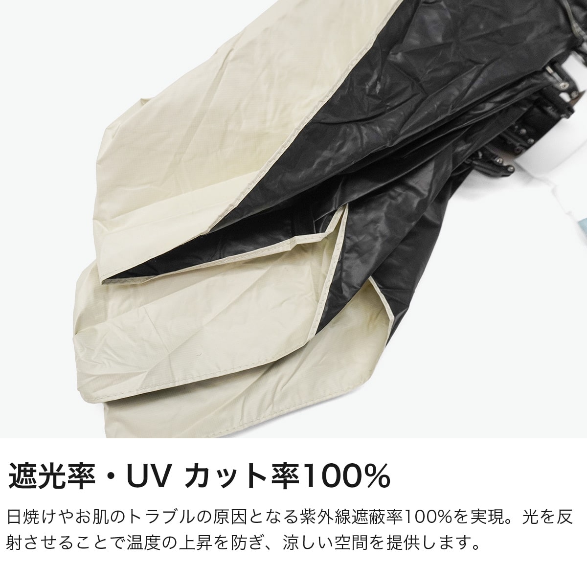 収納するとスマホよりもコンパクトな手のひらサイズ。遮光率・UV カット率100%という高機能を加え、「約 11.7cm」の小ささはそのままに、暑さ・紫外線対策としても充分にご使用いただけます。持ち運びが苦にならないサイズ感で、日常生活はもちろん、旅行時にも頼りになるお守り的な存在です。