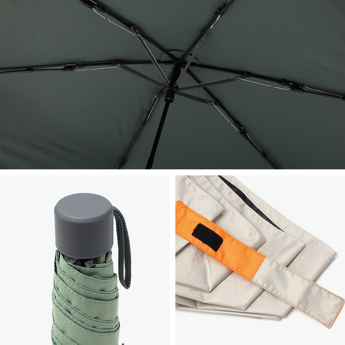 MA-1ジャケットをオマージュした、ユニセックス仕様の晴雨兼用折りたたみ傘。ファスナー使いや刻印入りのシリコンタブといったディテール、MA-1の象徴でもあるオレンジの裏地をあしらい、開くたびに遊び心と高揚感を添えるデザインに。ジャケットライクなニュアンスカラーが揃い、ファッションの延長線で楽しめる一本に仕上がっています。