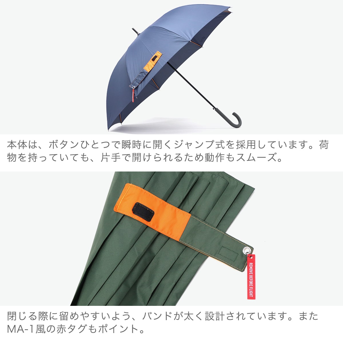 オレンジ色が目を引く MA-1風デザイン雨傘