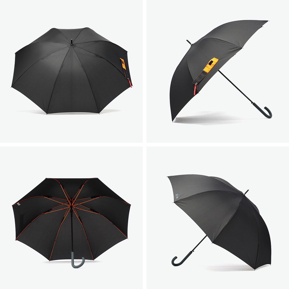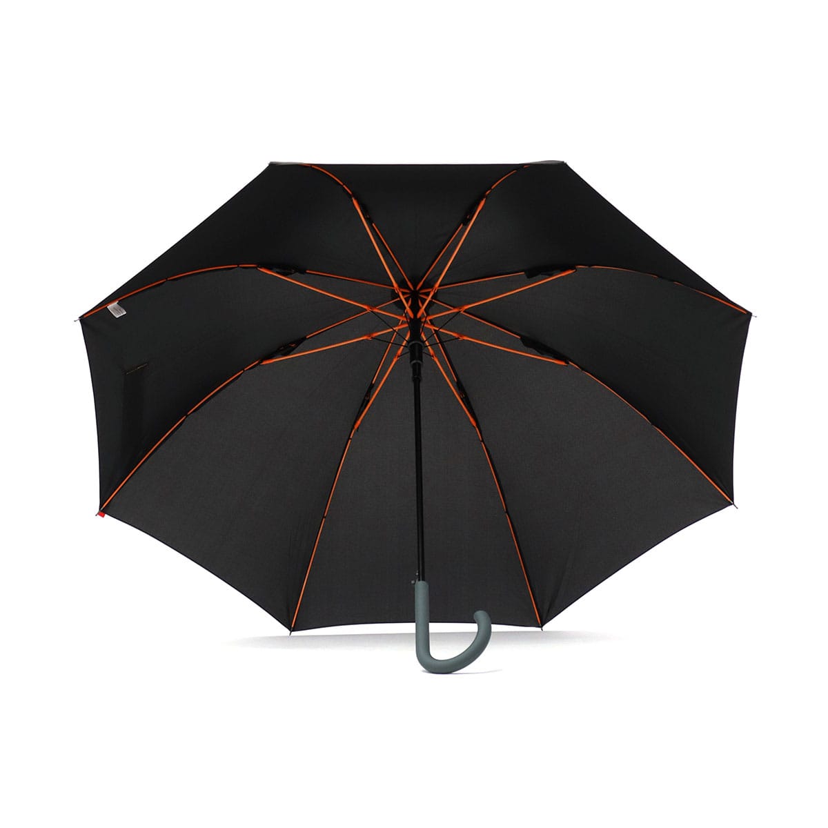 MA-1ジャケットをオマージュした、ユニセックス仕様の長傘。ファスナー使いや刻印入りのシリコンタブといったディテール、MA-1の象徴でもあるオレンジをポイントにあしらい、開くたびに遊び心と高揚感を添えるデザインに。ジャケットライクなニュアンスカラーが揃い、ファッションの延長線で楽しめる一本に仕上がっています。
