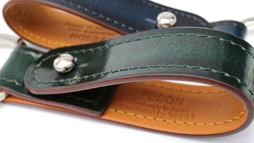 木製家具のようなアンティーク調を演出した、ツヤのある上品なアドバンレザーを贅沢に使用したキーホルダー。毎日手にするアイテムだからこそ、こだわりのキーホルダーで日常に高級感と彩りをプラスしてみてはいかかがでしょうか。