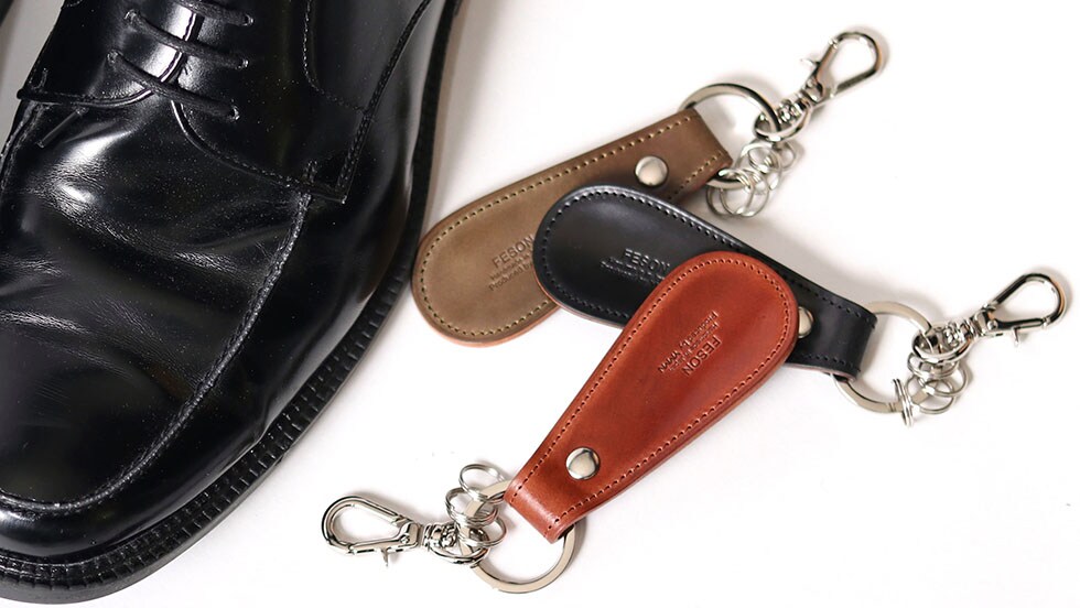 FESON フェソン 靴ベラ キーホルダー 靴べら くつべら 携帯 キーリング コードバン 革 メンズ レディース レザー 本革KH02-006