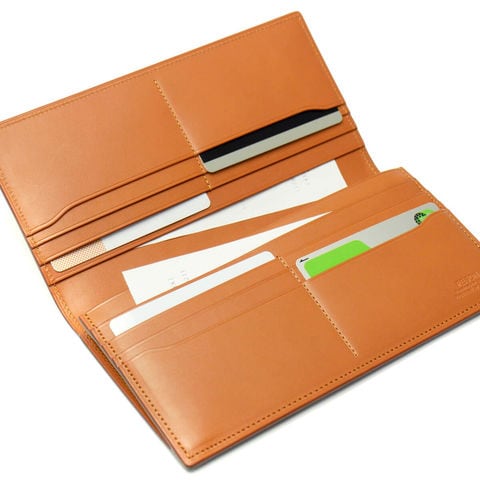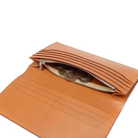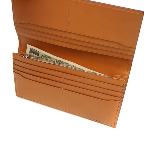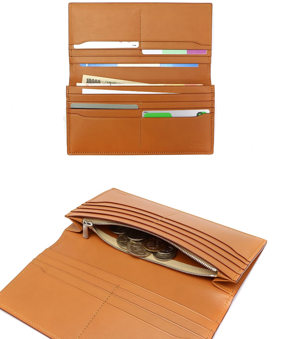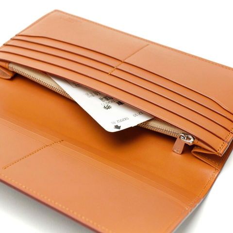 収納部は1層の札入れと、ファスナー開閉の小銭入れを備えたベーシックなつくりです。カードポケットは12ヶ所と豊富に装備。その他、領収書などの管理に便利なポケットも設けられお財布に求める機能をしっかりと詰め込んだ使い勝手の良い仕上がりになっています。