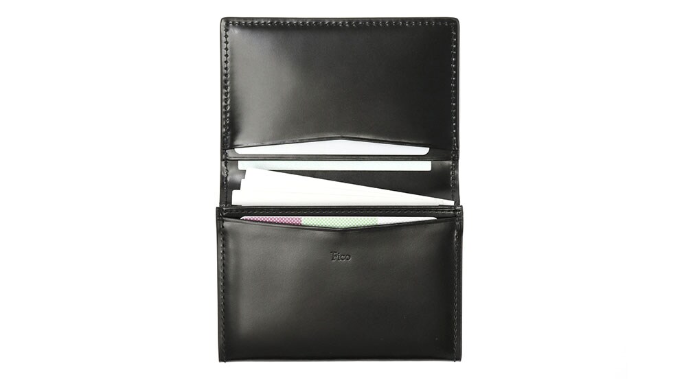 本体はベーシックで扱いやすい内装設計。メインのカードポケットには、名刺やカードをスムーズに出し入れしやすいようにM字型のマチを採用しています。また、本体内外には共に複数のカードポケットを設けているため、社員証や頂いた名刺など、仕分けておきたいカード類の管理に役立ちます。
