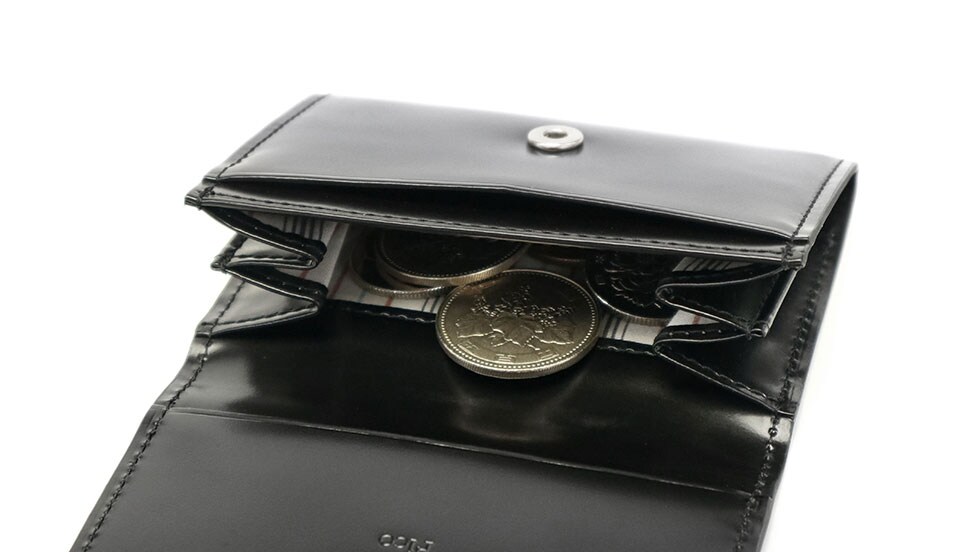 本体はスムーズに開閉できるスナップボタン仕様。ジャバラマチで大きく開きコインの取り出しがしやすいため、会計時のストレスをフリーにしてくれます。カードが収まるポケットも備え、クレジットカードや交通系ICカードなども一緒に持ち歩くことが可能です。