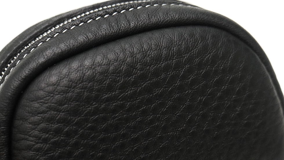 素材には、1958年創業のイタリア大手のタンナー、マストロット社のシュリンクレザーを使用。ヨーロッパ産の原皮を用いており、しっとりとした手触りと小ぶりで主張しすぎないシボが特徴です。シミや汚れが付きにくく、お手入れも比較的簡単なのでデイリーに使いやすい素材となっています。