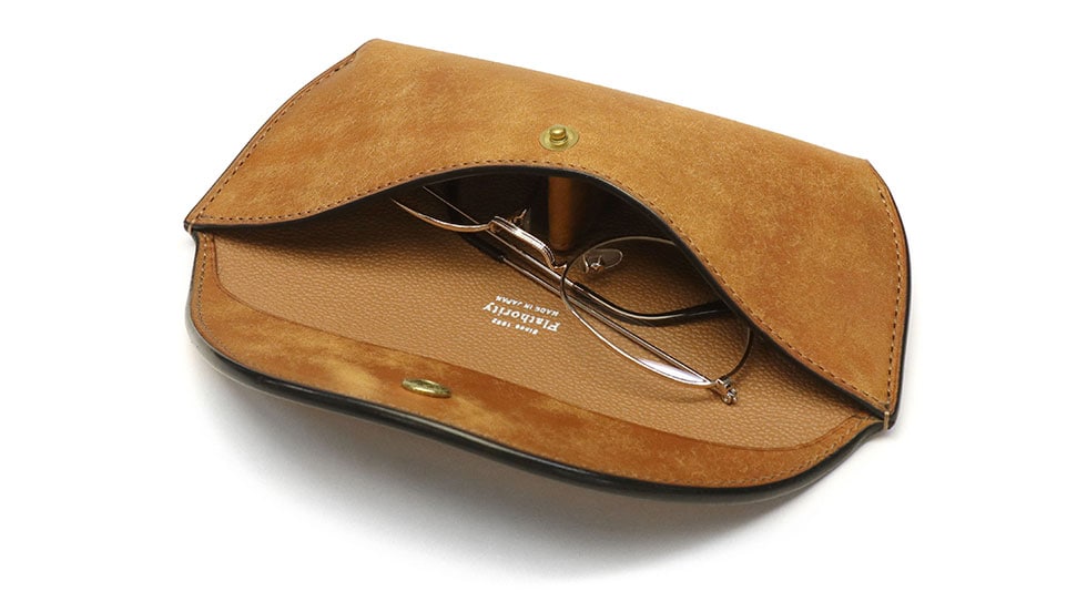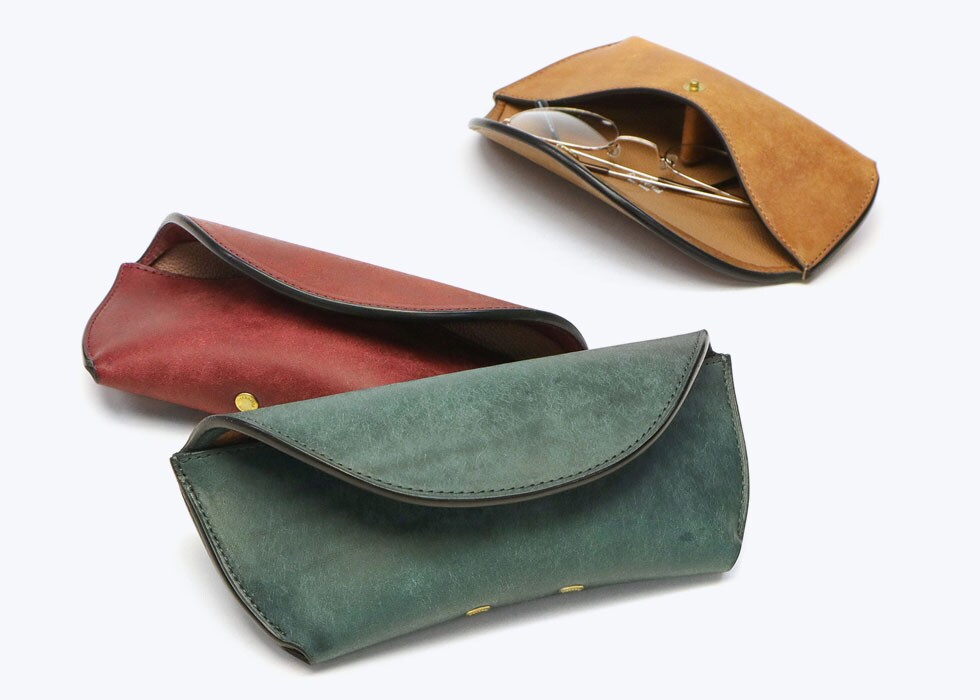 革の負担がかかりにくいパターンを考え、製品として無理のない製作方法を用いることで、使いやすく壊れにくいというポイントを重視してつくられた眼鏡ケース。非常に手間暇をかけて丁寧に製作し、かつ革の自然な風合いも活かされた鞄メーカーならではの上質な仕上がりが魅力です。
