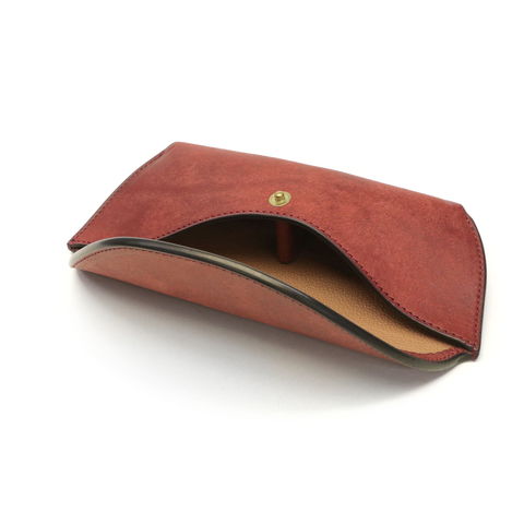 硬質なつくりでかっちりと制作されており、見た目の美しさだけでなく眼鏡の保護機能も兼備しています。ハードなイタリアンレザーがメガネケースにぴったりとマッチしています。