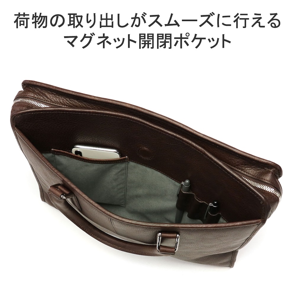 シンプルなデザインの中にも至る所にこだわりを注ぎ込んだ2WAYブリーフケース。オイル感あるしっとりした革は使い込むほどに艶感が増し、綺麗にエイジングされていきます。消耗の激しいハンドルとファスナー部分は職人による徹底した作り込みで、末長くお使い頂くために考慮されたデザインがポイント。また、着脱可能なショルダーストラップにより、様々なシーンに合わせてお使い頂けるアイテムです。