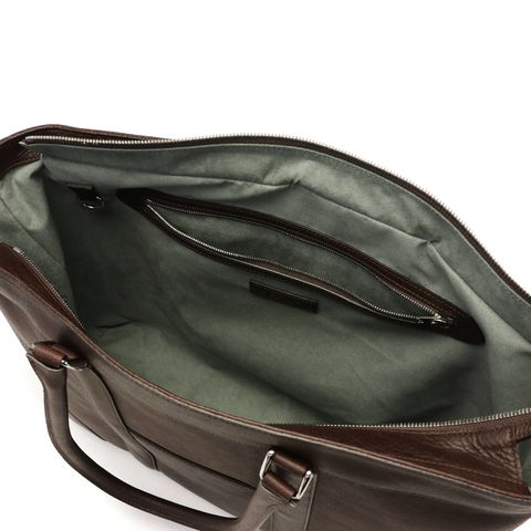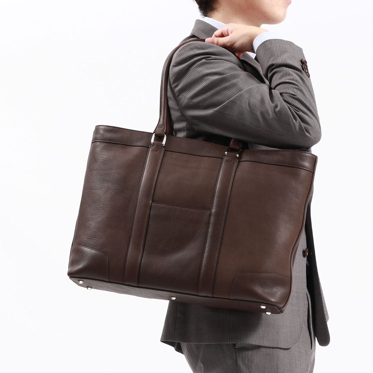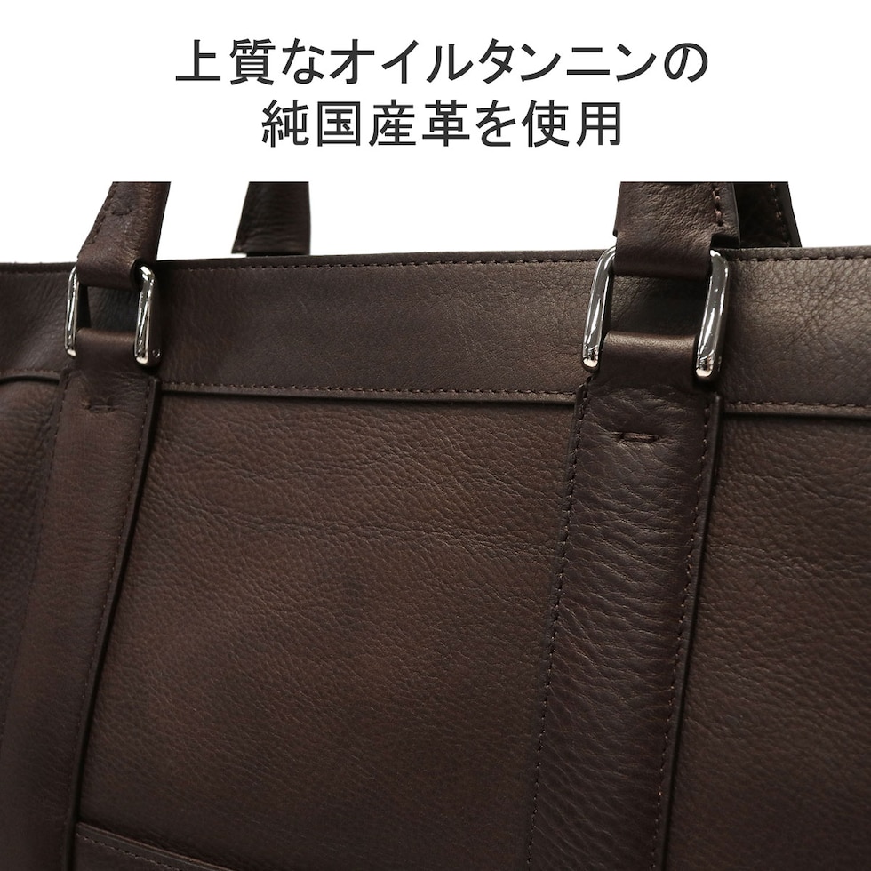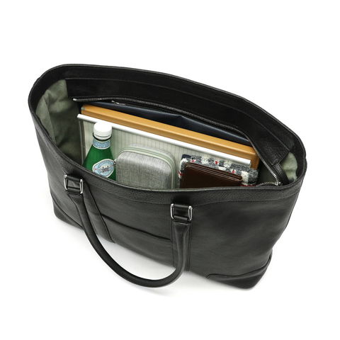シンプルなデザインの中にも至る所にこだわりを注ぎ込んだトートバッグ。オイル感あるしっとりした革は使い込むほどに艶感が増し、綺麗にエイジングされていきます。マチと底の四つ角は革で補強されており、熟練した職人が無駄のないパターンを製作しているのもポイント。ハンドルは肩掛け・手持ちでも違和感のない長さ設定となっており、オンオフ問わず活躍してくれます。