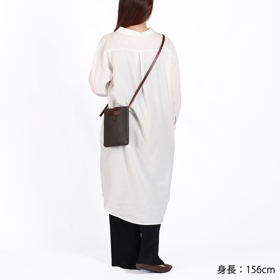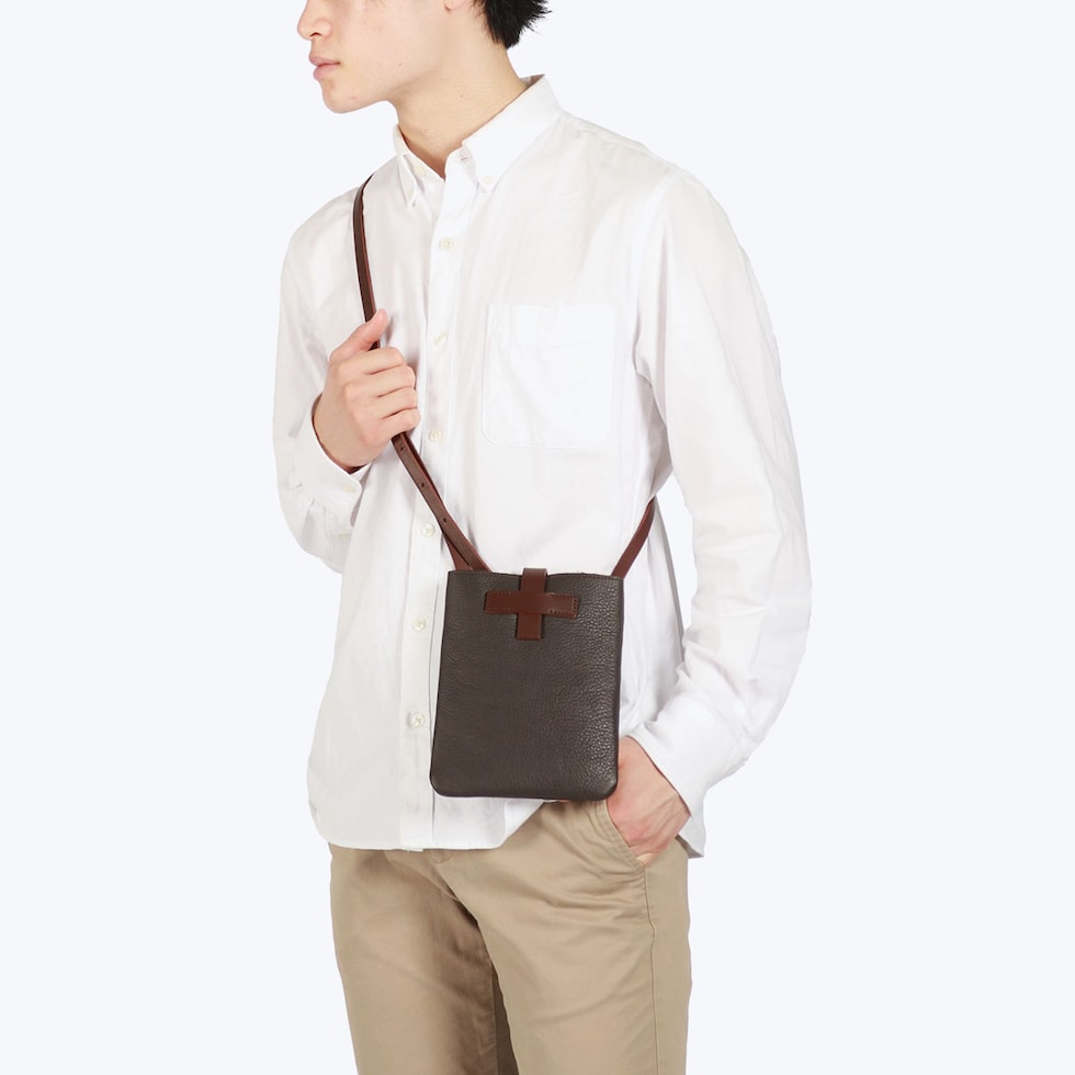 外装のイタリア産シュリンクレザーと、内装の鮮やかな国産ピッグスエードを貼り合わせた「ダブルフェイス」素材が特徴の『Dual/デュアル』シリーズ。こちらのミニショルダーは、艶やかで上質な素材から醸し出される大人な風合いと、サッと身軽なお出掛けを叶える小振りなサイジングが魅力。旅先や日常のコーディネートをさり気なく格上げしてくれるアイテムです。